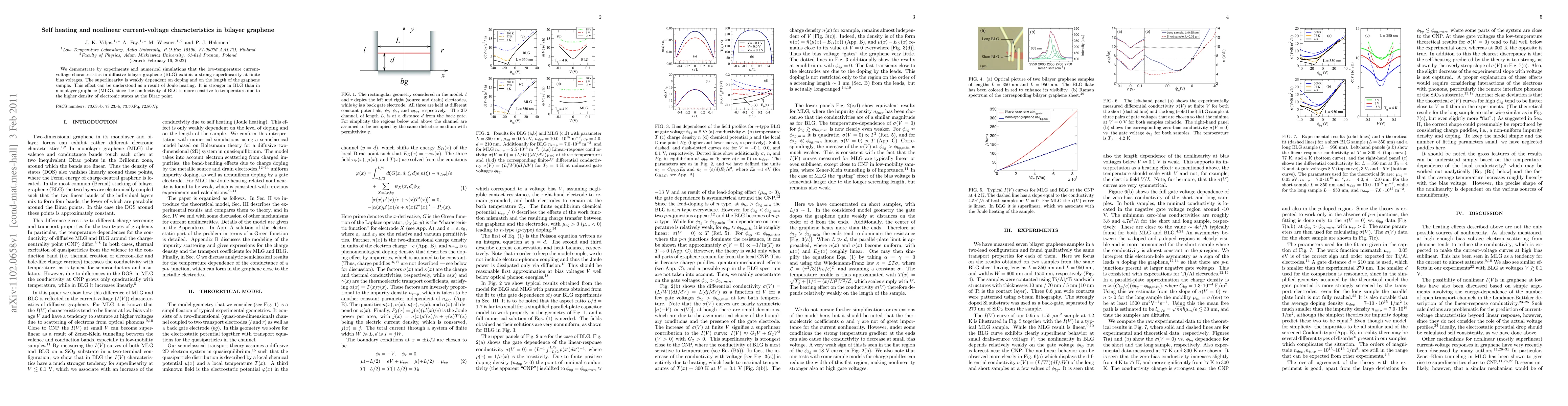 We demonstrate by experiments and numerical simulations that the low-temperature current-voltage characteristics in diffusive bilayer graphene (BLG) exhibit a strong superlinearity at finite bias voltages. The superlinearity is weakly dependent on doping and on the length of the graphene sample. This effect can be understood as a result of Joule heating. It is stronger in BLG than in monolayer graphene (MLG), since the conductivity of BLG is more sensitive to temperature due to the higher density of electronic states at the Dirac point.