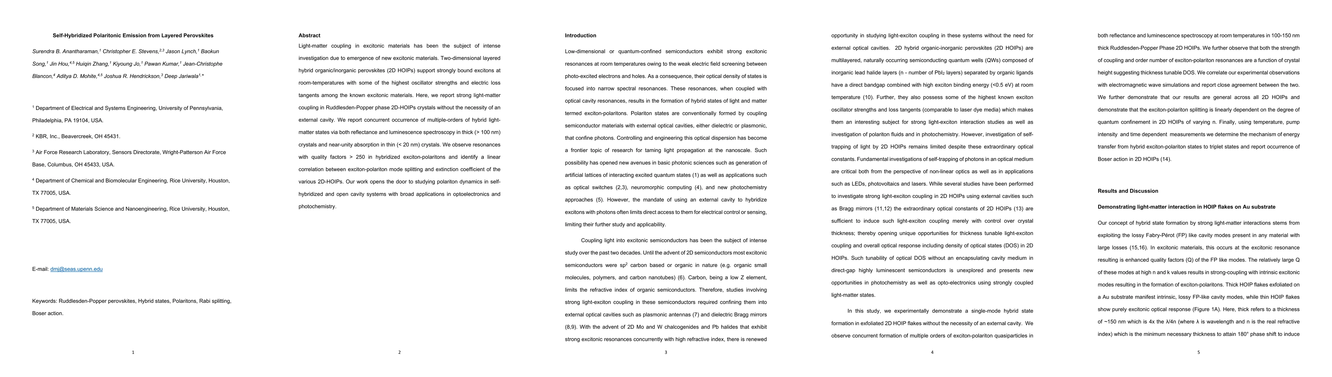Researchers discovered strong light-matter coupling in Ruddlesden-Popper phase 2D-HOIPs crystals without an external cavity, leading to high-quality hybridized exciton-polaritons with applications in optoelectronics and photochemistry.