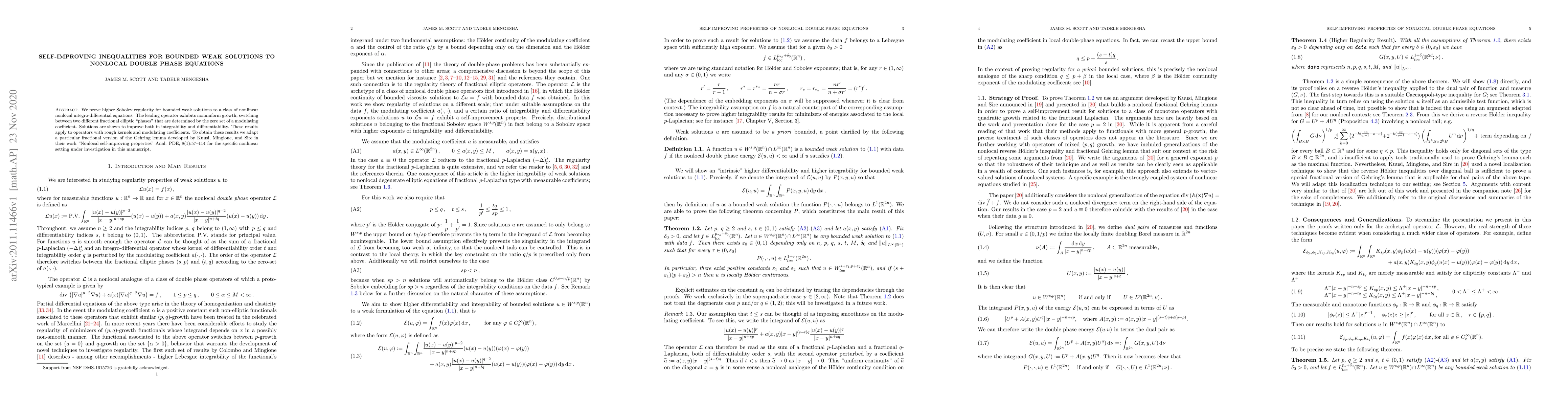 This research paper proves higher Sobolev regularity for bounded weak solutions to nonlocal double phase equations, showing they improve in both integrability and differentiability.