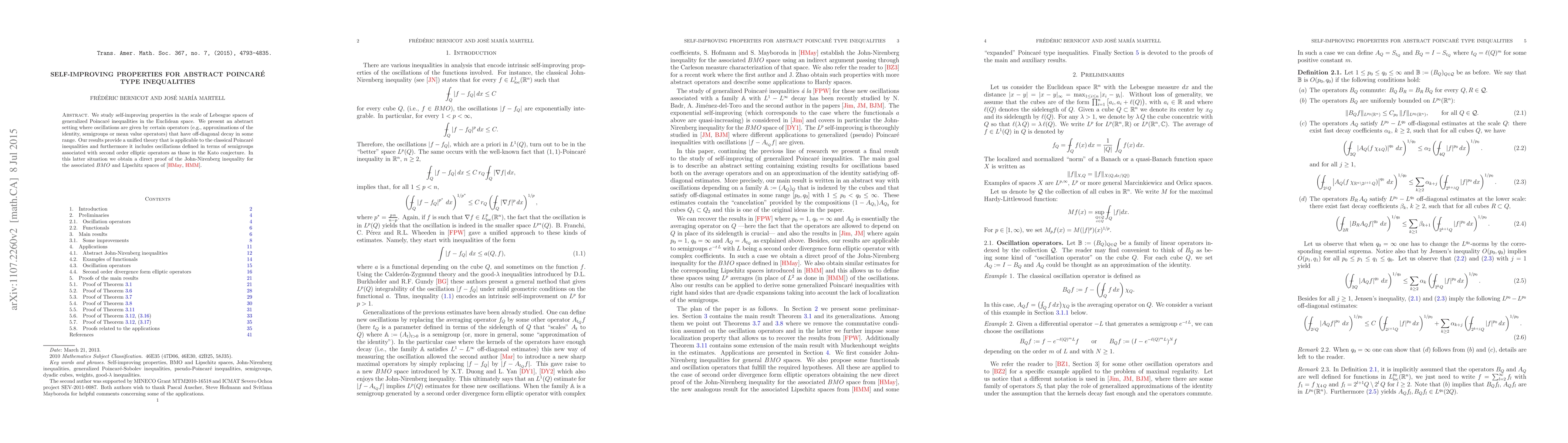 We study self-improving properties in the scale of Lebesgue spaces of generalized Poincar\'e inequalities in the Euclidean space. We present an abstract setting where oscillations are given by certain operators (e.g., approximations of the identity, semigroups or mean value operators) that have off-diagonal decay in some range. Our results provide a unified theory that is applicable to the classical Poincar\'e inequalities and furthermore it includes oscillations defined in terms of semigroups associated with second order elliptic operators as those in the Kato conjecture. In this latter situation we obtain a direct proof of the John-Nirenberg inequality for the associated BMO and Lipschitz spaces of [HMay,HMM].