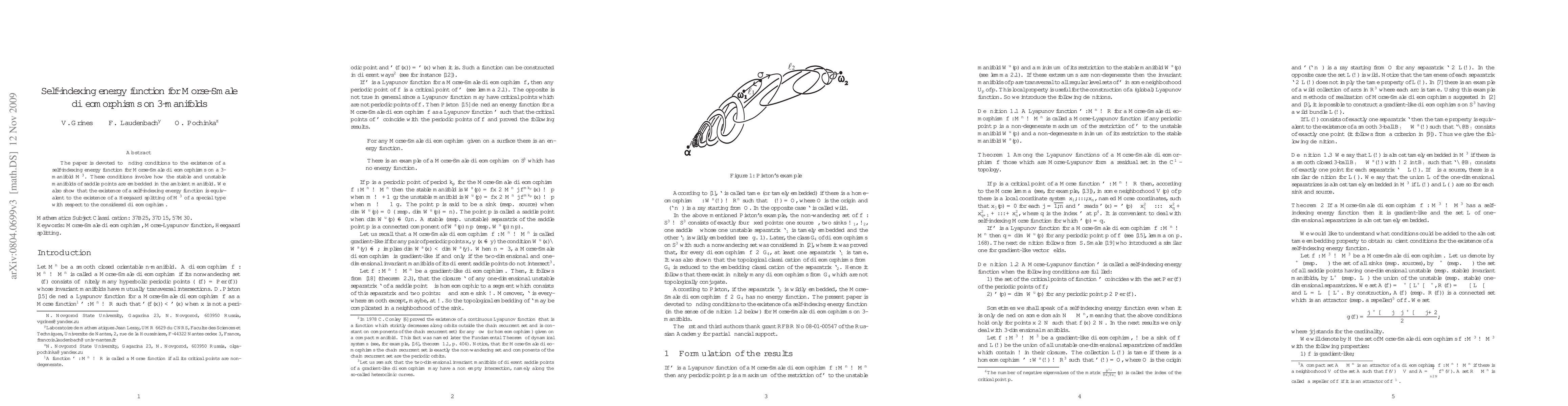 Summary: The paper establishes conditions for the existence of a self-indexing energy function for Morse-Smale diffeomorphisms on 3-manifolds, linking it to the embedding of stable and unstable manifolds, and demonstrating its equivalence to the presence of a specific type of Heegaard splitting.