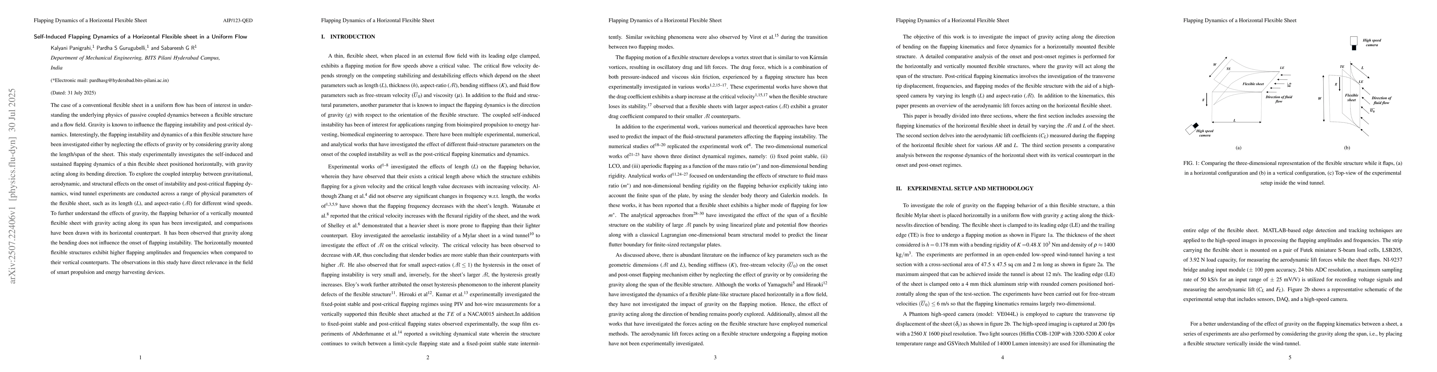 Wind tunnel experiments conducted on a thin flexible sheet for two configurations: horizontally mounted with gravity acting along the bending direction and vertically mounted with gravity along the span. Investigated range of geometric parameters (L, A) for wind speeds up to 5.5 m/s for horizontal configurations.