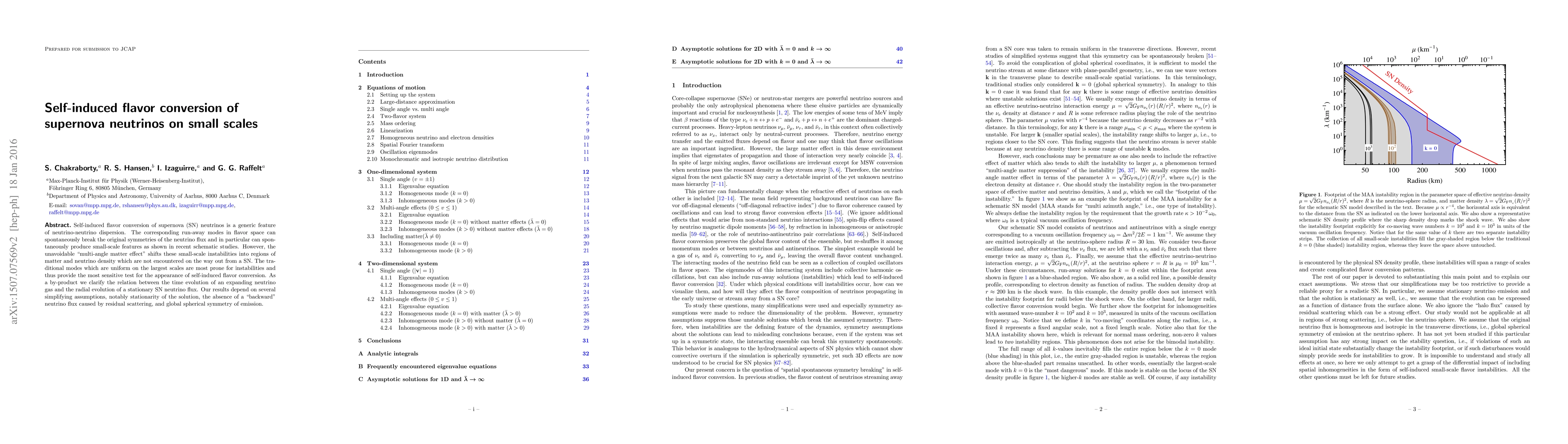 This paper investigates the self-induced flavor conversion of supernova neutrinos, revealing that such conversions can produce small-scale features due to neutrino-neutrino interactions. Despite these instabilities, the inherent "multi-angle matter effect" complicates their detection outside the supernova's core.