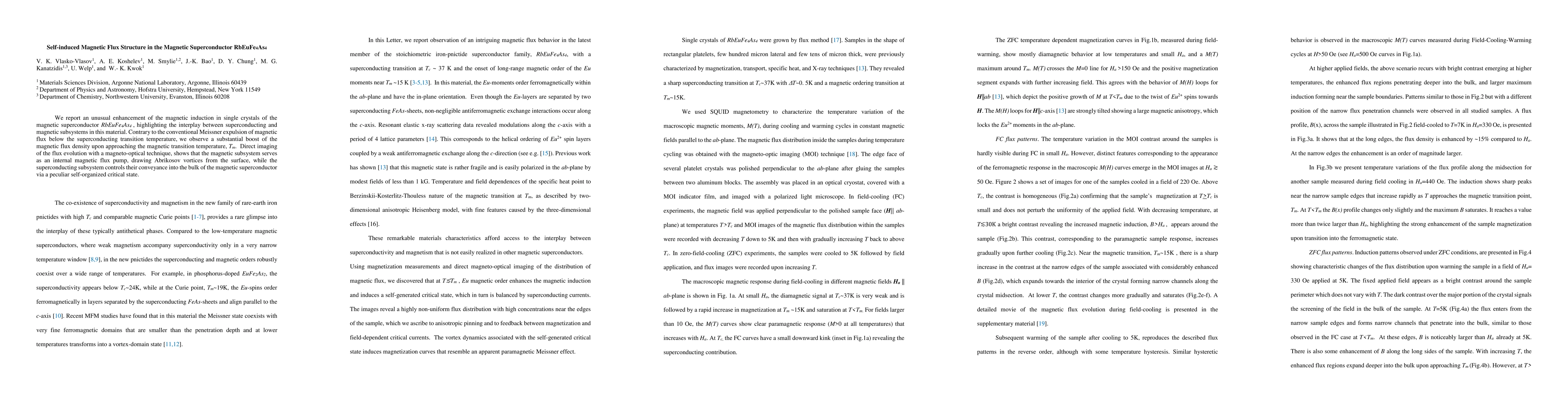 We report an unusual enhancement of the magnetic induction in single crystals of the magnetic superconductor RbEuFe$_4$As$_4$ , highlighting the interplay between superconducting and magnetic subsystems in this material. Contrary to the conventional Meissner expulsion of magnetic flux below the superconducting transition temperature, we observe a substantial boost of the magnetic flux density upon approaching the magnetic transition temperature, Tm. Direct imaging of the flux evolution with a magneto-optical technique, shows that the magnetic subsystem serves as an internal magnetic flux pump, drawing Abrikosov vortices from the surface, while the superconducting subsystem controls their conveyance into the bulk of the magnetic superconductor via a peculiar self-organized critical state.