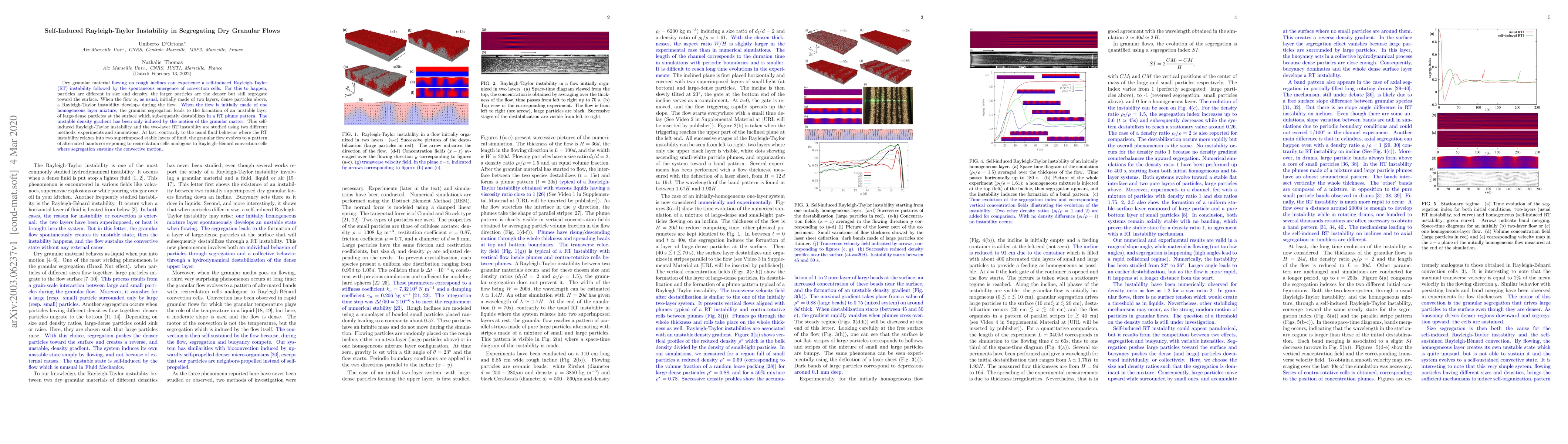 This work is novel because it shows that the segregation of particles in dry granular flows can lead to the emergence of convection cells, unlike fluid behavior where RT instability relaxes into stable layers.