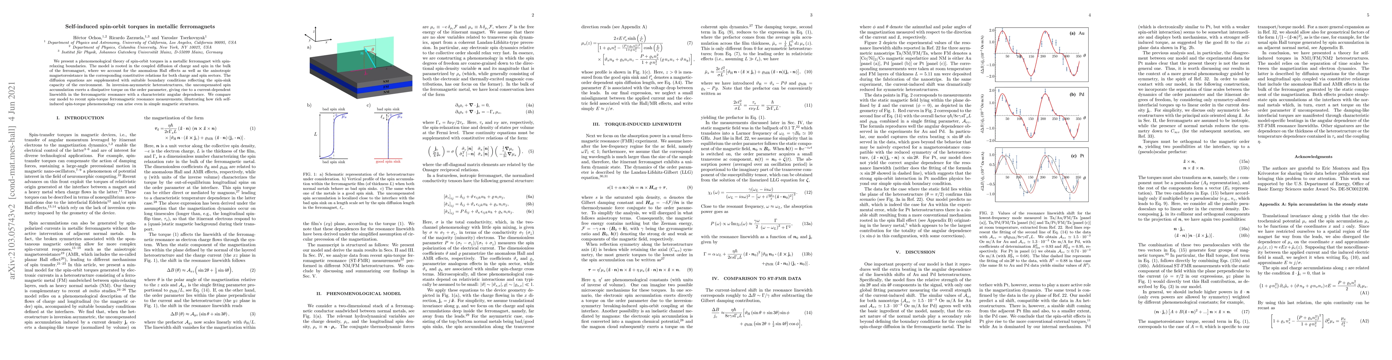 We present a phenomenological theory of spin-orbit torques in a metallic ferromagnet with spin-relaxing boundaries. The model is rooted in the coupled diffusion of charge and spin in the bulk of the ferromagnet, where we account for the anomalous Hall effects as well as the anisotropic magnetoresistance in the corresponding constitutive relations for both charge and spin sectors. The diffusion equations are supplemented with suitable boundary conditions reflecting the spin-sink capacity of the environment. In inversion-asymmetric heterostructures, the uncompensated spin accumulation exerts a dissipative torque on the order parameter, giving rise to a current-dependent linewidth in the ferromagnetic resonance with a characteristic angular dependence. We compare our model to recent spin-torque ferromagnetic resonance measurements, illustrating how rich self-induced spin-torque phenomenology can arise even in simple magnetic structures.