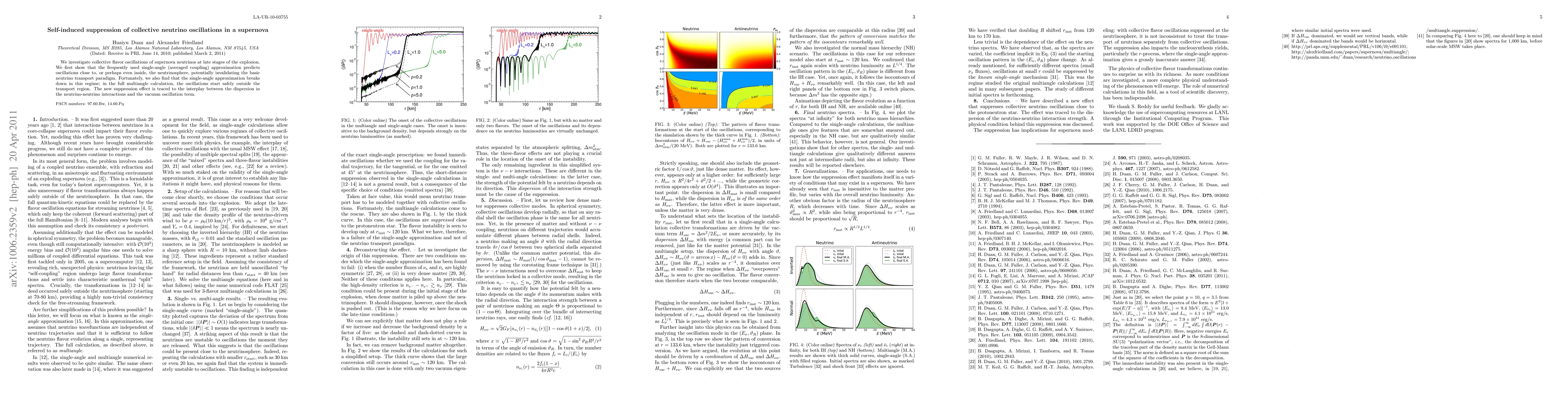 This work distinguishes itself by identifying and explaining a previously unrecognized suppression effect in collective neutrino oscillations, which has significant implications for supernova neutrino transport modeling.