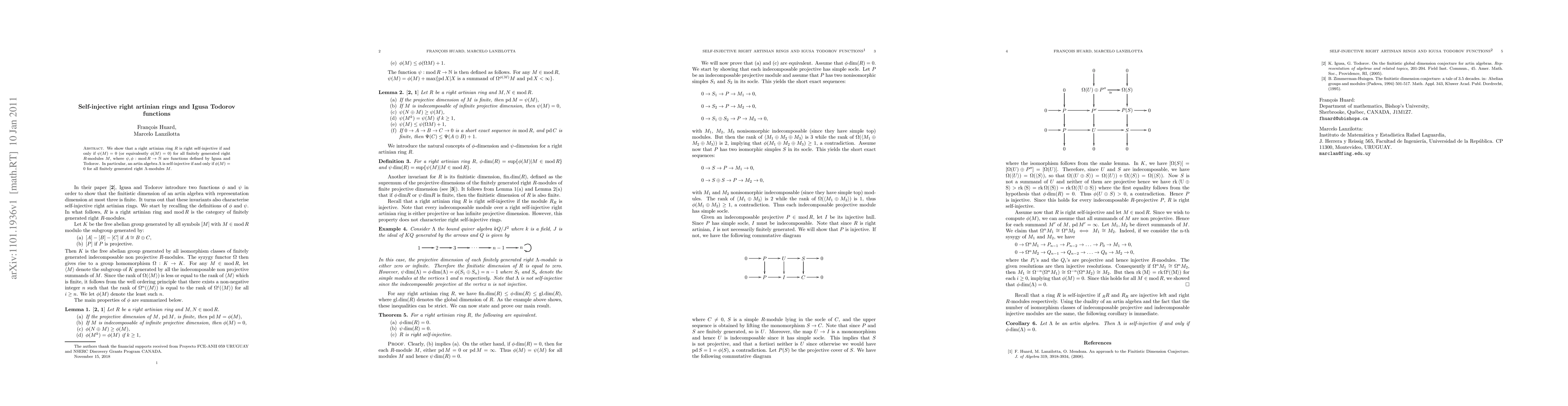 We show that a right artinian ring $R$ is right self-injective if and only if $\psi(M)=0$ (or equivalently $\phi(M)=0$) for all finitely generated right $R$-modules $M$, where $\psi, \phi : \mod R \to \mathbb N$ are functions defined by Igusa and Todorov. In particular, an artin algebra $\Lambda$ is self-injective if and only if $\phi(M)=0$ for all finitely generated right $\Lambda$-modules $M$.