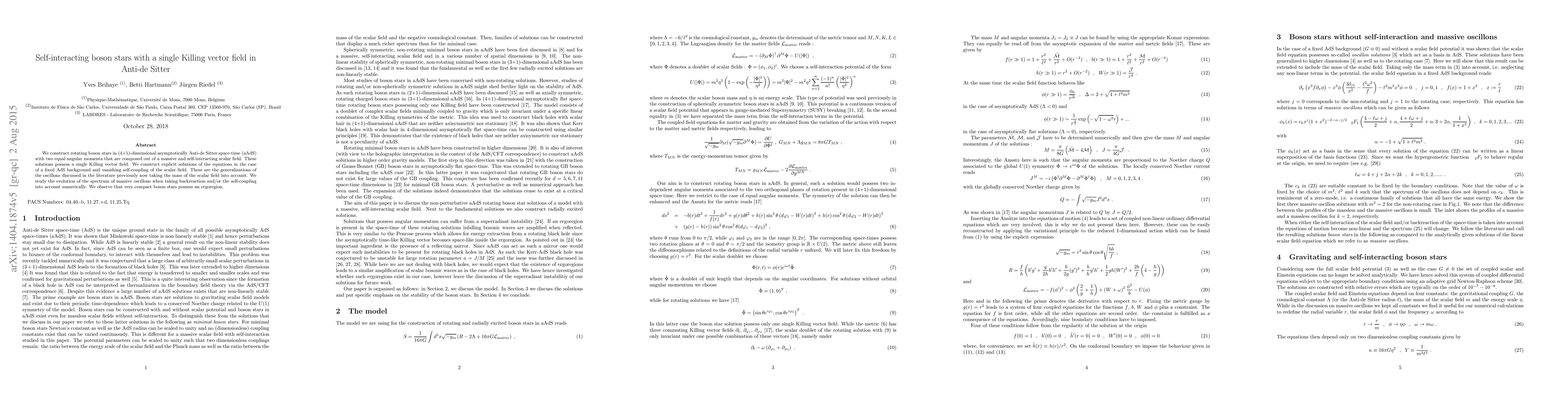 This paper constructs rotating boson stars in (4+1)-dimensional asymptotically Anti-de Sitter space-time composed of massive, self-interacting scalar fields. The study reveals the presence of an ergoregion in very compact boson stars and numerically explores the effects of backreaction and self-coupling on the spectrum of massive oscillons.