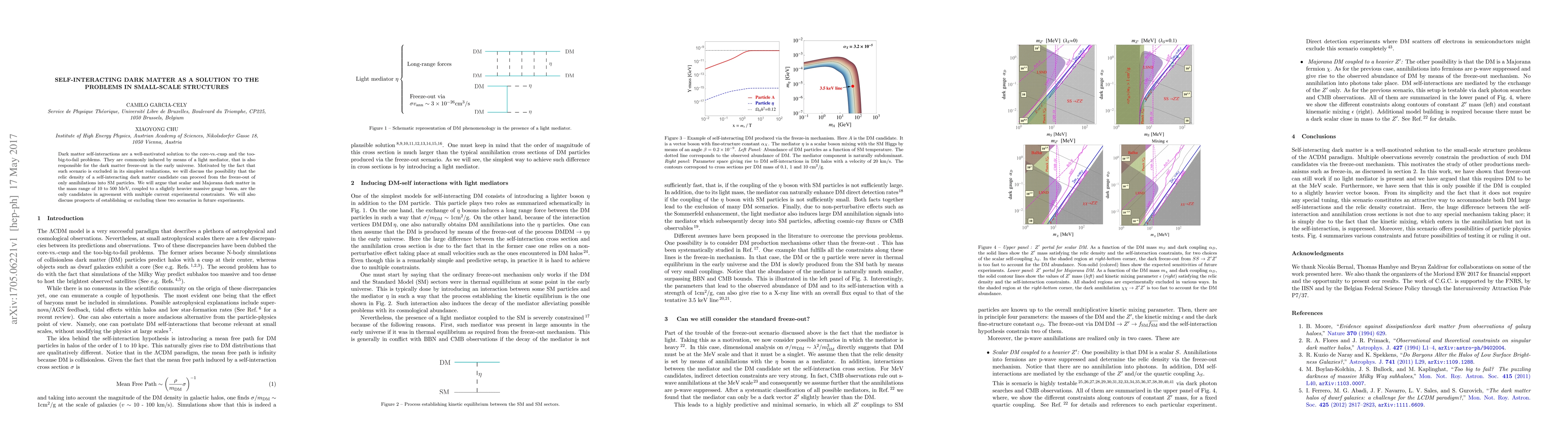 This paper explores self-interacting dark matter as a solution to small-scale structure problems, focusing on scalar and Majorana dark matter candidates in the 10 to 500 MeV range, mediated by a slightly heavier gauge boson. It argues these candidates can resolve core-vs.-cusp and too-big-to-fail issues while complying with experimental constraints, and discusses future experimental prospects for verification.