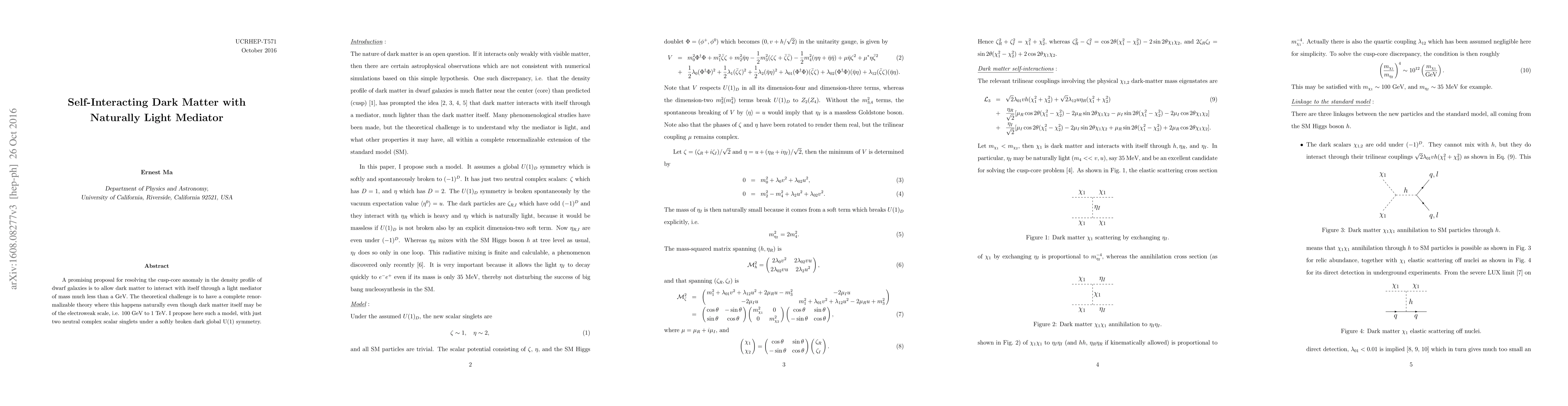 This paper proposes a model of self-interacting dark matter with a naturally light mediator, aiming to resolve the cusp-core anomaly in dwarf galaxies.