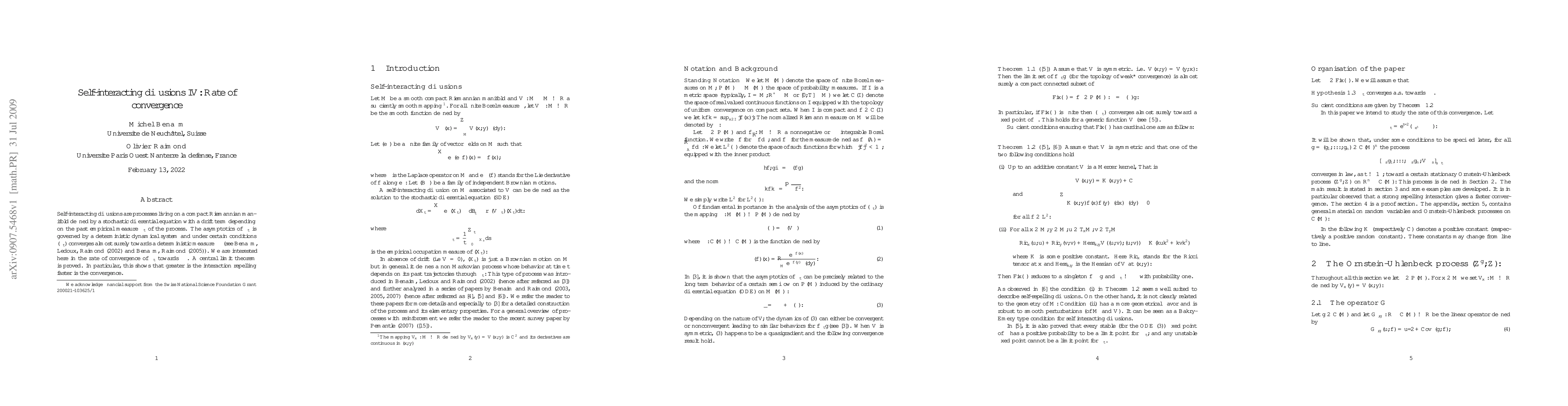This paper investigates the rate of convergence for self-interacting diffusions on a compact Riemannian manifold, proving a central limit theorem that demonstrates faster convergence for stronger repelling interactions. The study focuses on the asymptotic behavior governed by a deterministic dynamical system.