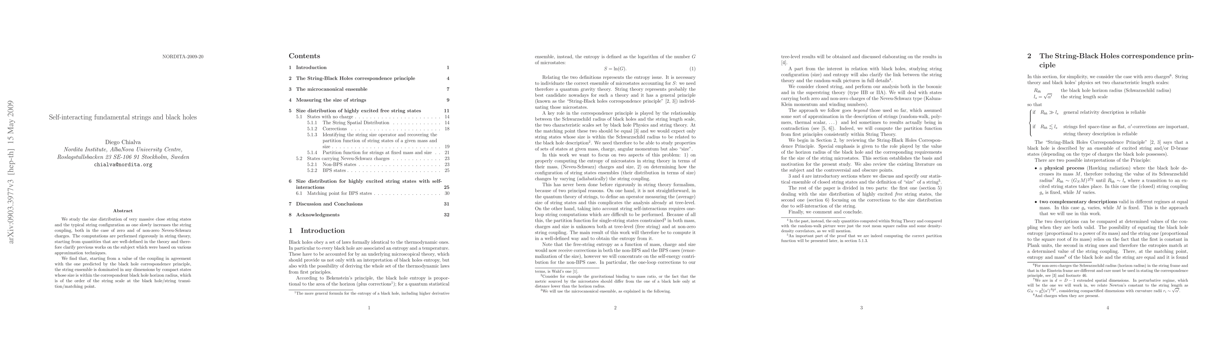 We study the size distribution of very massive close string states and the typical string configuration as one slowly increase the string coupling, both in the case of zero and of non-zero Neveu-Schwarz charges. The computations are performed rigorously in string theory, starting from quantities that are well-defined in the theory and therefore clarify previous works on the subject which were based on various approximation techniques. We find that, starting from a value of the coupling in agreement with the one predicted by the black hole correspondence principle, the string ensemble is dominated in any dimensions by compact states whose size is within the correspondent black hole horizon radius, which is of the order of the string scale at the black hole/string transition point.