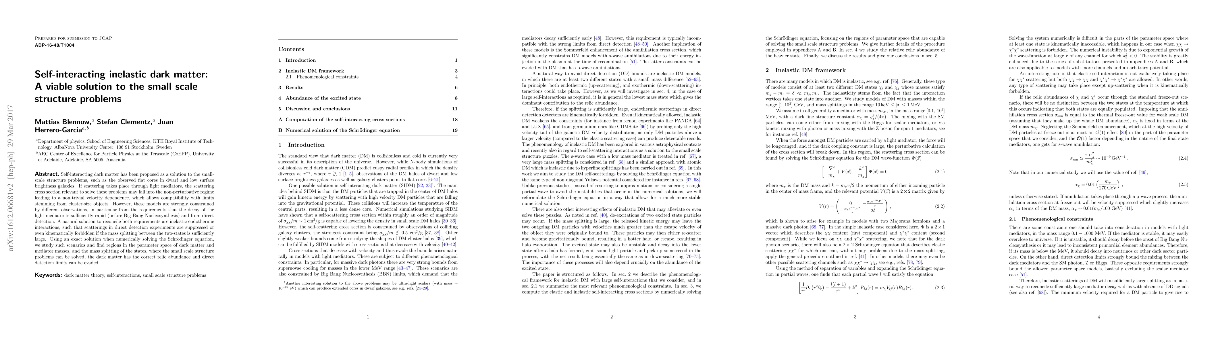 This paper proposes inelastic self-interacting dark matter as a solution to small-scale structure problems, demonstrating that inelastic endothermic interactions can reconcile the need for rapid decay of light mediators and evade direct detection constraints. The study identifies parameter regions where these interactions can address observed galaxy core structures while maintaining compatibility with relic abundance and observational limits.