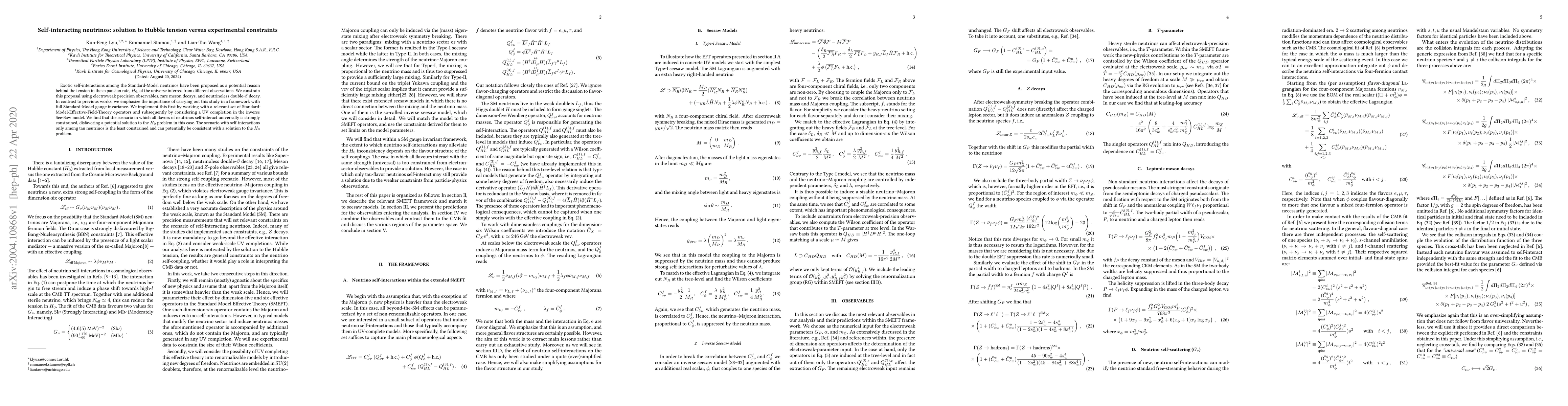 This paper explores the possibility of neutrino self-interactions as a solution to the Hubble tension, using constraints from electroweak precision tests, rare meson decays, and neutrinoless double-beta decay. It finds that universal self-interactions among all neutrino flavors are strongly constrained, while self-interactions specifically among tau neutrinos remain less constrained and could potentially resolve the Hubble tension.