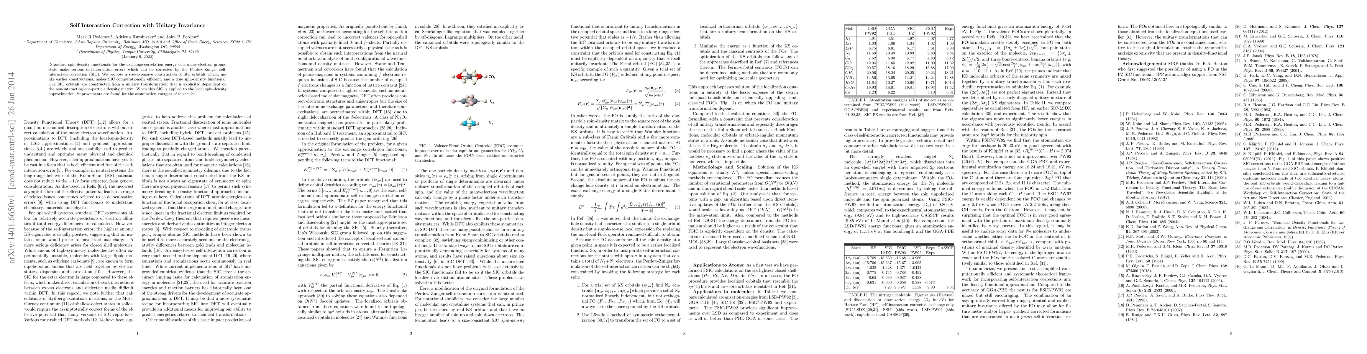 This paper proposes a computationally efficient, size-extensive self-interaction correction (SIC) method for density functional theory (DFT) using unitary invariance. The SIC orbitals, constructed via a unitary transformation, improve the accuracy of atomization energies in molecules when applied to the local spin-density approximation.