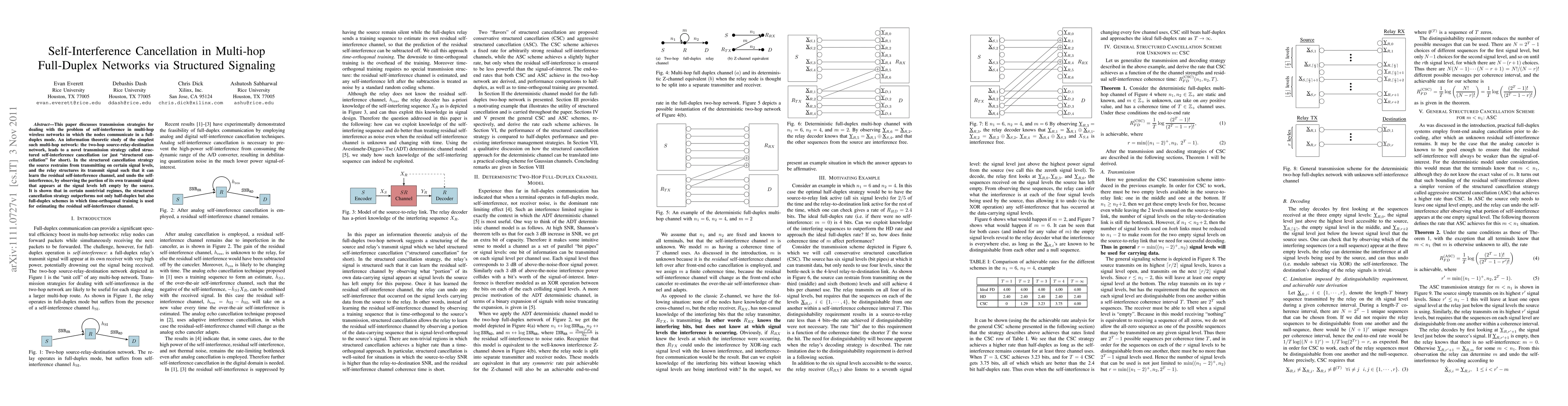 This paper proposes a novel structured self-interference cancellation strategy for multi-hop full-duplex networks, where the relay learns and cancels residual self-interference by observing its own signal. The strategy outperforms both half-duplex and traditional full-duplex methods in certain scenarios.