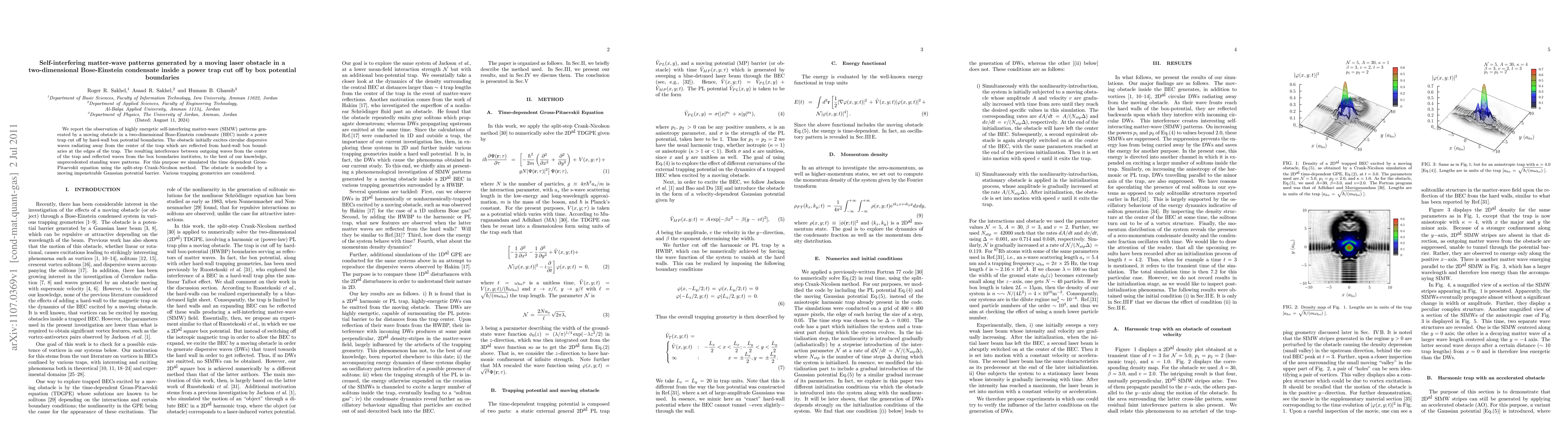 This paper reports the generation of unprecedented self-interfering matter-wave patterns in a two-dimensional Bose-Einstein condensate by a moving laser obstacle. The interference arises from reflected waves from box potential boundaries, observed through simulations of the Gross-Pitaevskii equation.