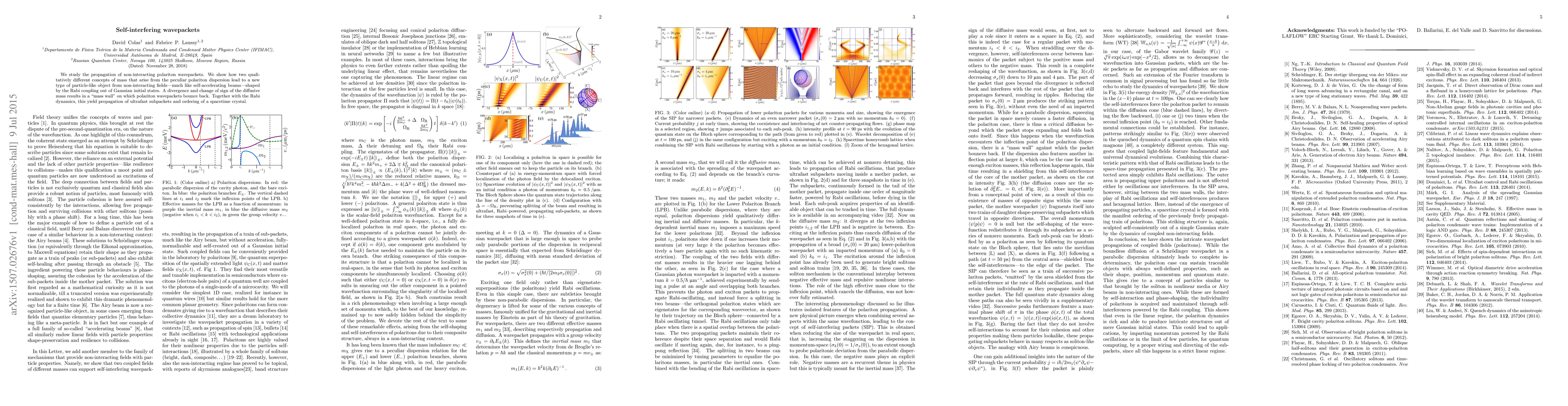 We study the propagation of non-interacting polariton wavepackets. We show how two qualitatively different concepts of mass that arise from the peculiar polariton dispersion lead to a new type of particle-like object from non-interacting fields---much like self-accelerating beams---shaped by the Rabi coupling out of Gaussian initial states. A divergence and change of sign of the diffusive mass results in a "mass wall" on which polariton wavepackets bounce back. Together with the Rabi dynamics, this yield propagation of ultrafast subpackets and ordering of a spacetime crystal.