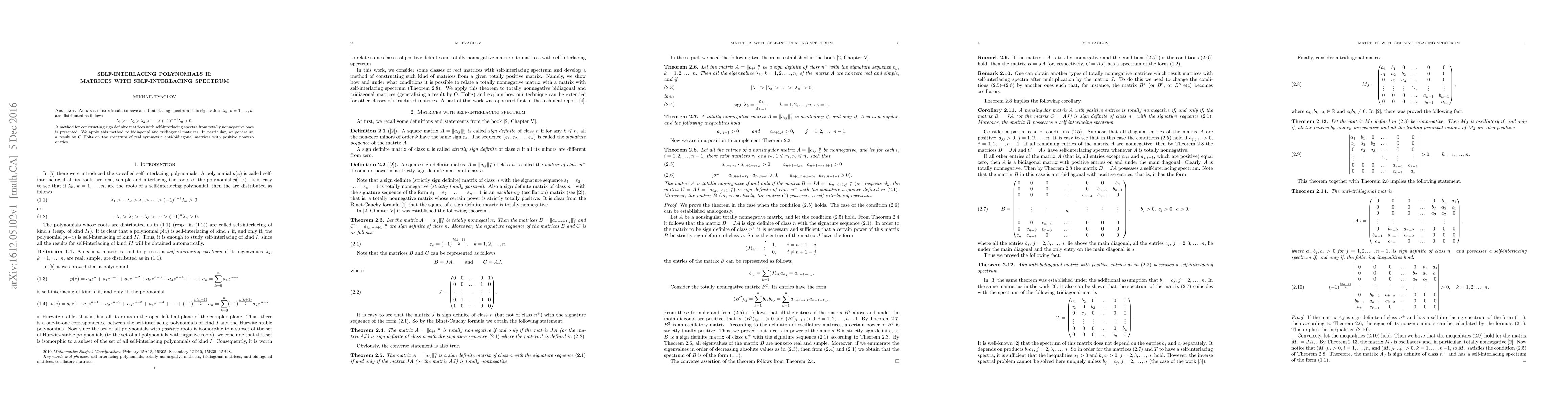 This paper introduces a method to construct sign definite matrices with self-interlacing spectra from totally nonnegative matrices, applying it specifically to bidiagonal and tridiagonal matrices. It extends a previous result on the spectra of real symmetric anti-bidiagonal matrices with positive nonzero entries.
