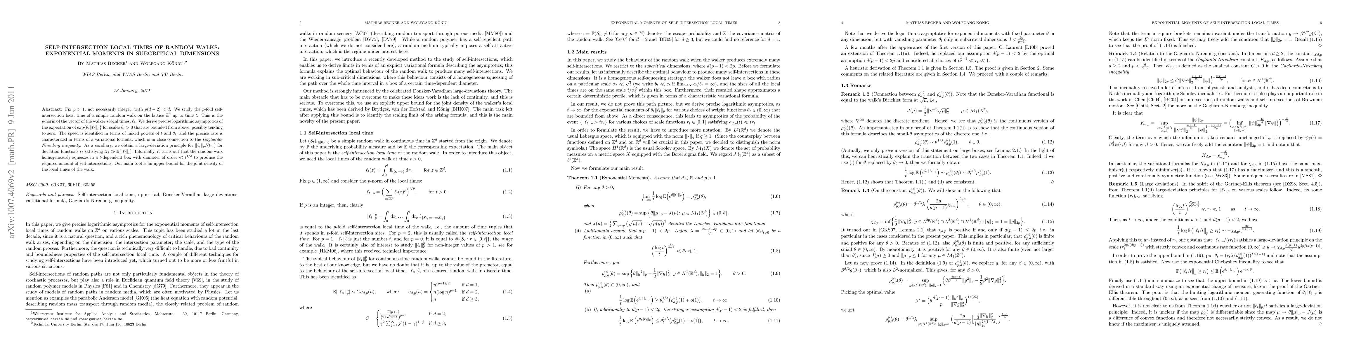 Researchers studied how often a random walk on a d-dimensional lattice intersects itself at each step, finding that it happens a certain number of times in relation to the time elapsed.