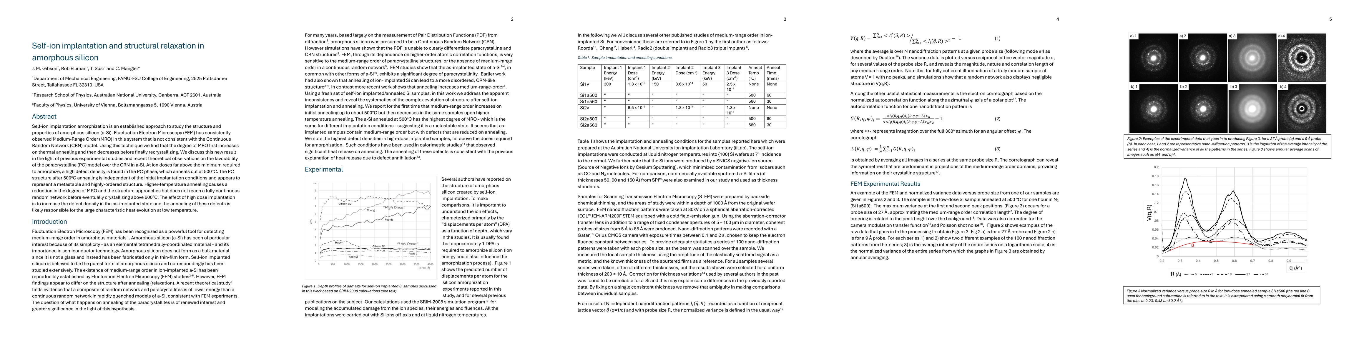 Researchers studied amorphous silicon using self-ion implantation and found that thermal annealing causes a metastable structure with high order, which eventually recrystallizes at high temperatures.