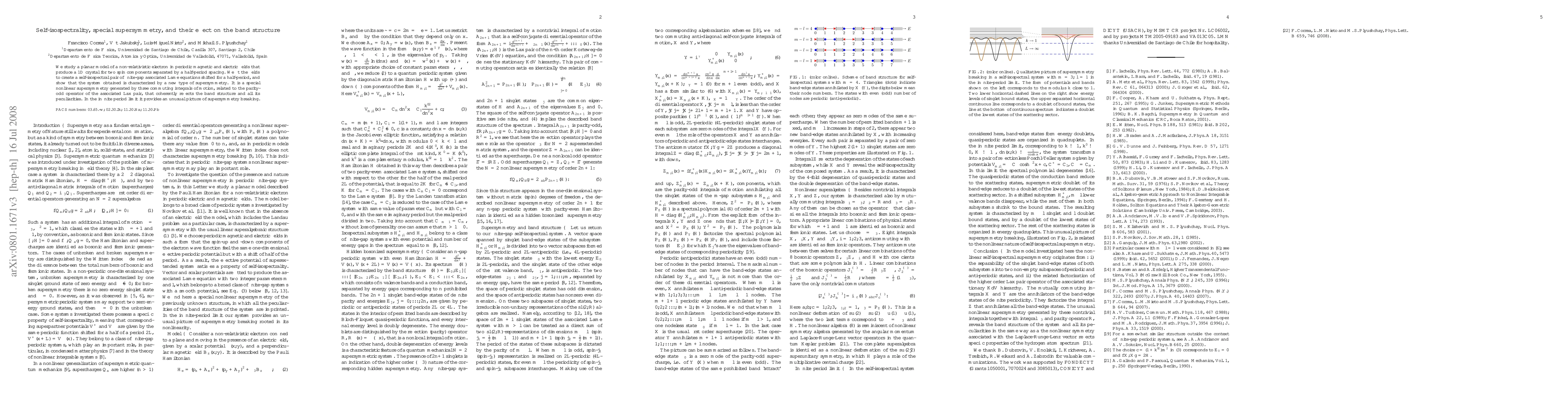 This paper investigates a planar electron model under periodic magnetic and electric fields, revealing a self-isospectral pair of finite-gap Lame equations. It introduces a novel special supersymmetry, generated by three commuting integrals, that coherently reflects the band structure and its peculiarities, leading to an unusual picture of supersymmetry breaking in the infinite period limit.