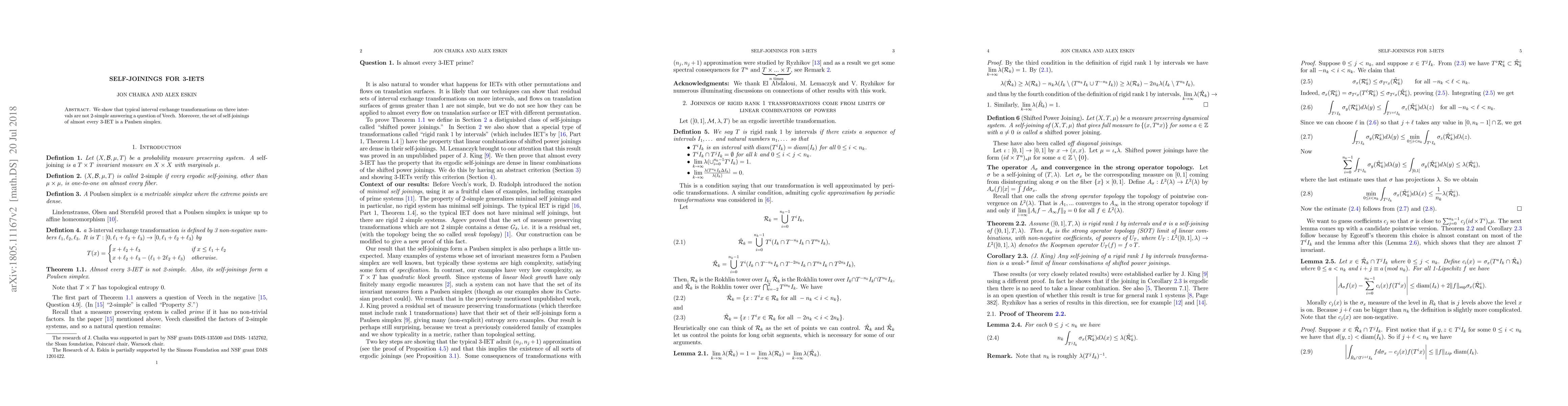 We show that typical interval exchange transformations on three intervals are not 2-simple answering a question of Veech. Moreover, the set of self-joinings of almost every 3-IET is a Paulsen simplex.