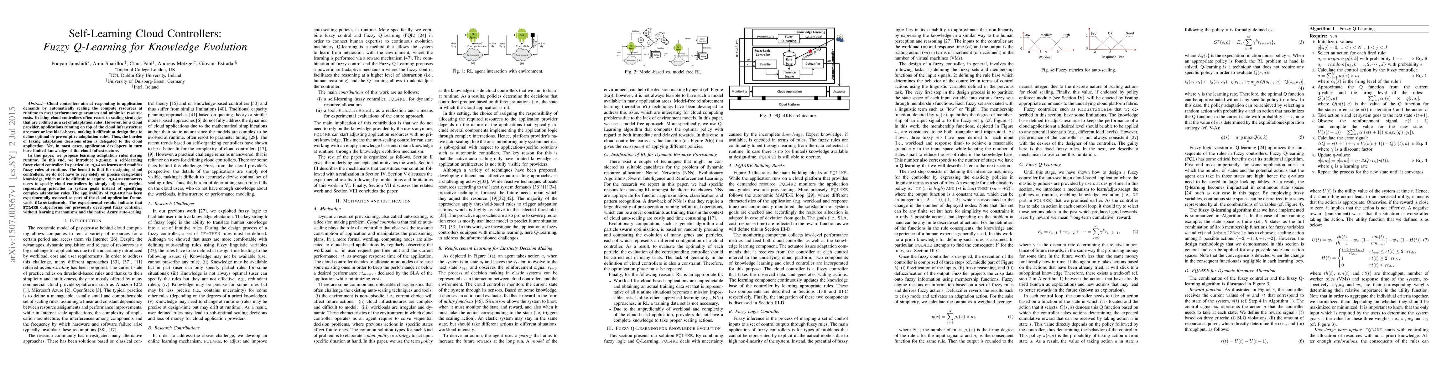 A fuzzy rule-based controller is entangled with a reinforcement learning algorithm to learn optimal elasticity policies.