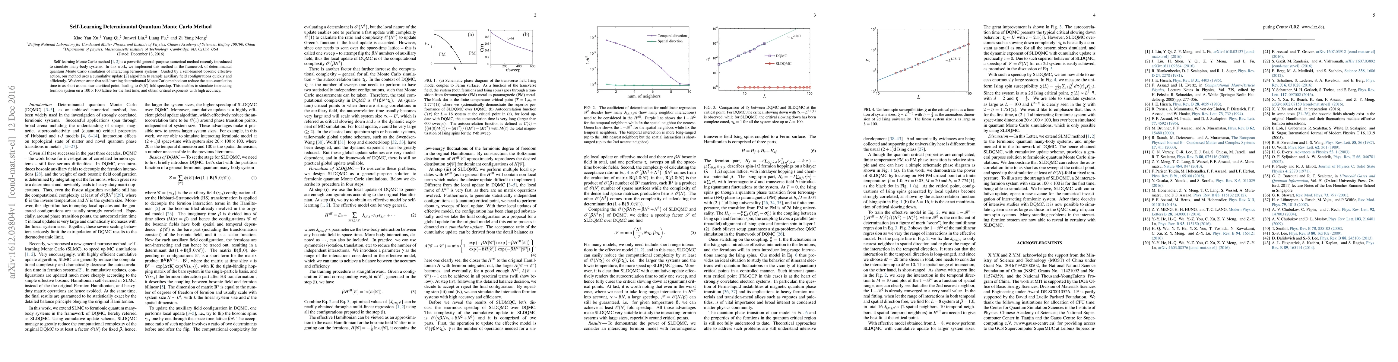 This paper introduces a self-learning determinantal quantum Monte Carlo method to simulate interacting fermion systems, achieving significant speedups by reducing auto-correlation time and enabling the first simulation of a $100\times 100$ lattice system. The method uses a self-learned bosonic effective action to efficiently sample configurations.