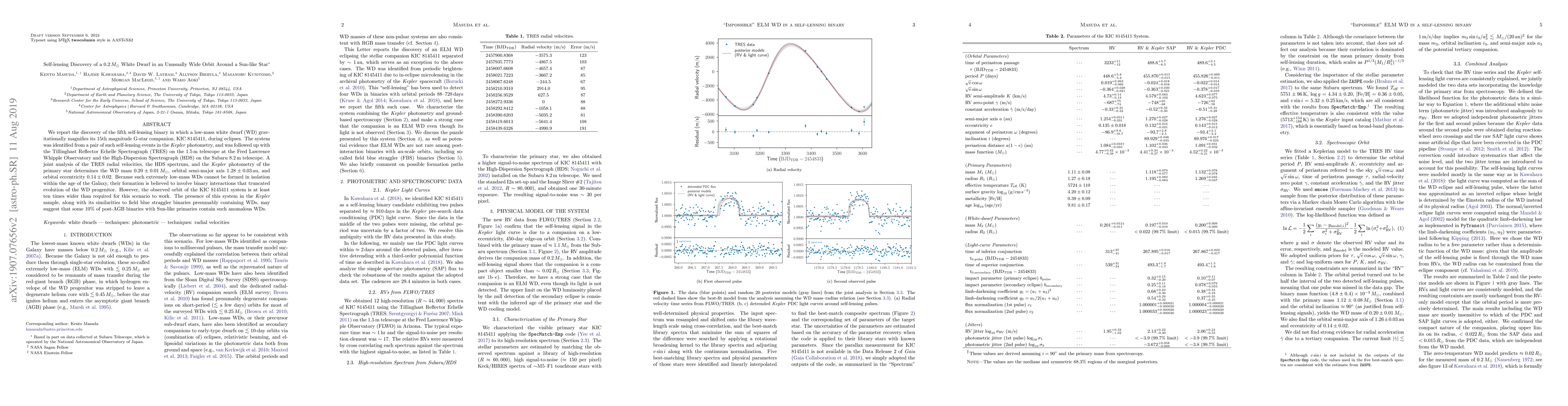 We report the discovery of the fifth self-lensing binary in which a low-mass white dwarf (WD) gravitationally magnifies its 15th magnitude G-star companion, KIC 8145411, during eclipses. The system was identified from a pair of such self-lensing events in the Kepler photometry, and was followed up with the Tillinghast Reflector Echelle Spectrograph (TRES) on the 1.5m telescope at the Fred Lawrence Whipple Observatory and the High-Dispersion Spectrograph (HDS) on the Subaru 8.2m telescope. A joint analysis of the TRES radial velocities, the HDS spectrum, and the Kepler photometry of the primary star determines the WD mass $0.20\pm0.01\,M_\odot$, orbital semi-major axis $1.28\pm0.03\,\mathrm{au}$, and orbital eccentricity $0.14\pm0.02$. Because such extremely low-mass WDs cannot be formed in isolation within the age of the Galaxy, their formation is believed to involve binary interactions that truncated evolution of the WD progenitor. However, the observed orbit of the KIC 8145411 system is at least ten times wider than required for this scenario to work. The presence of this system in the Kepler sample, along with its similarities to field blue straggler binaries presumably containing WDs, may suggest that some 10% of post-AGB binaries with Sun-like primaries contain such anomalous WDs.