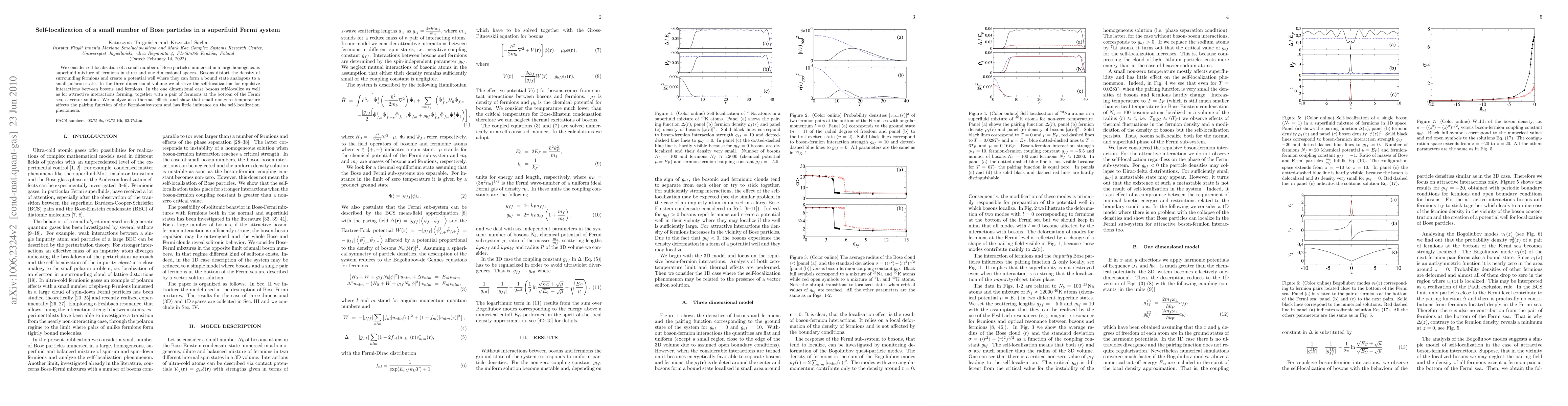 Researchers studied how a small number of bosons interact with fermions in superfluids, finding self-localization and bound states in 3D and 1D spaces, with thermal effects having little impact on the phenomenon.