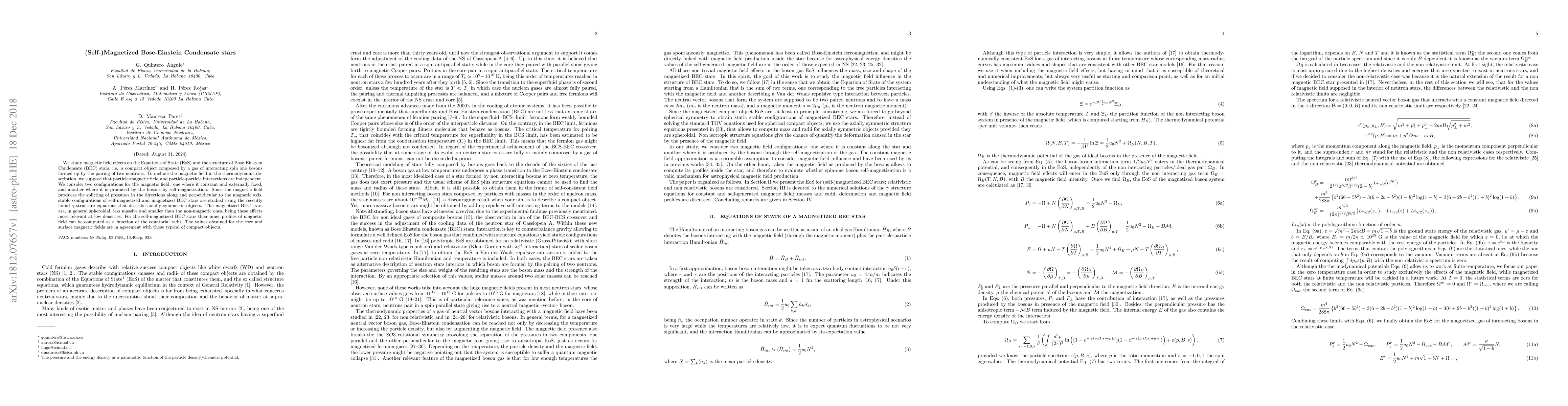 This paper investigates the impact of magnetic fields on the equations of state and structure of Bose-Einstein Condensate stars, which are compact objects composed of neutron pairs. It examines both externally imposed and self-generated magnetic fields, finding that magnetized BEC stars are generally less massive and smaller, with effects more pronounced at low densities.