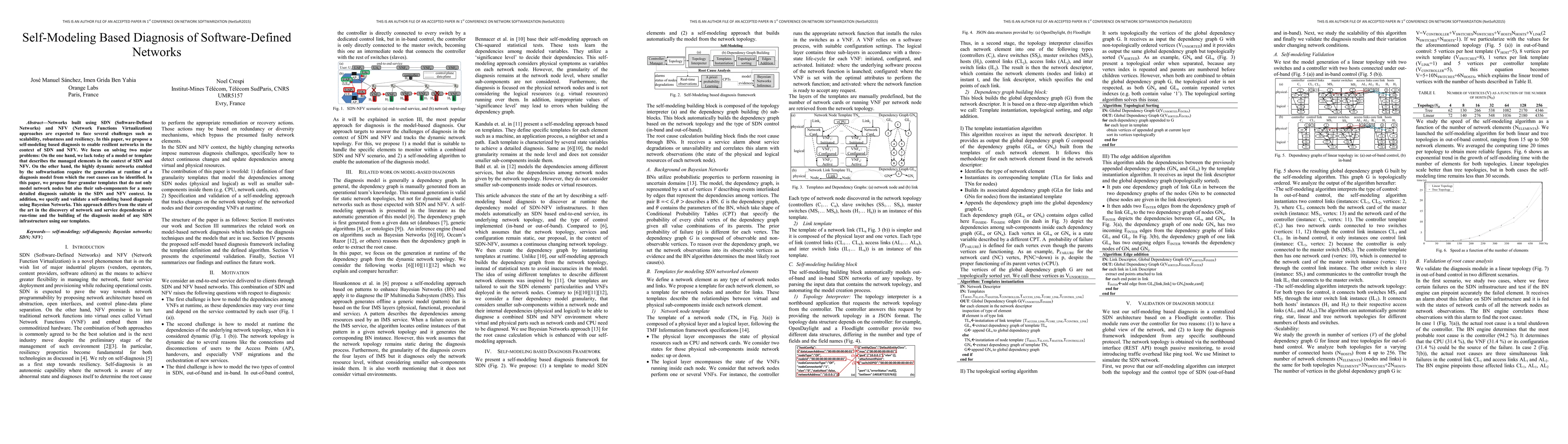 This paper proposes a self-modeling based diagnosis method for Software-Defined Networks (SDN) and Network Functions Virtualization (NFV) to address scalability and resiliency challenges. It introduces finer granular templates for detailed diagnosis and validates a Bayesian Network approach for real-time diagnosis model generation.