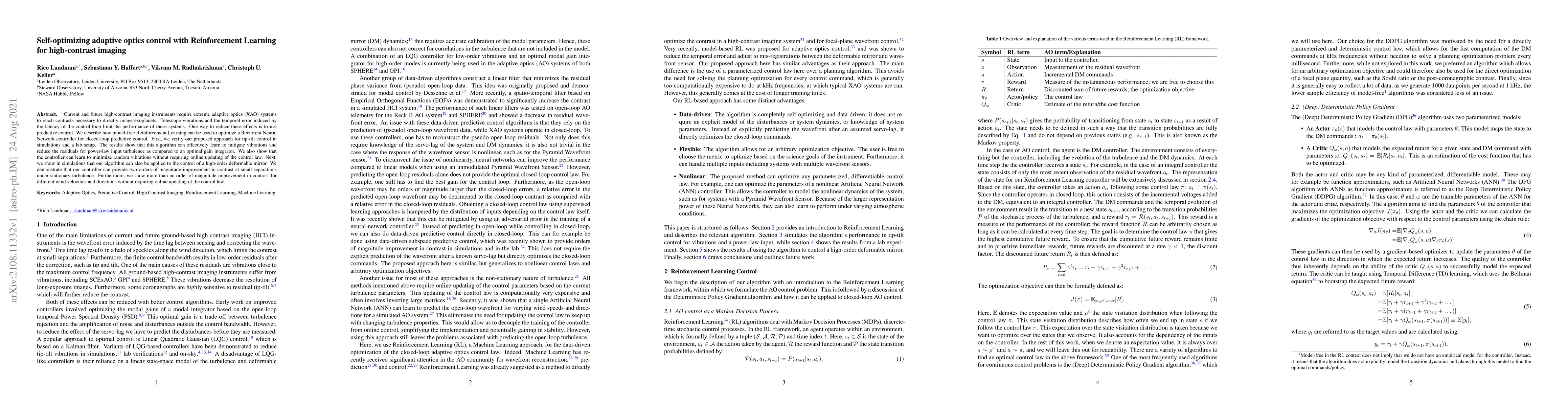 This paper proposes a Reinforcement Learning approach to optimize adaptive optics control for high-contrast imaging, demonstrating significant improvements over traditional methods in both simulated and lab environments. The model-free algorithm effectively reduces vibrations and turbulence-induced errors, achieving substantial gains in imaging contrast for exoplanets.
