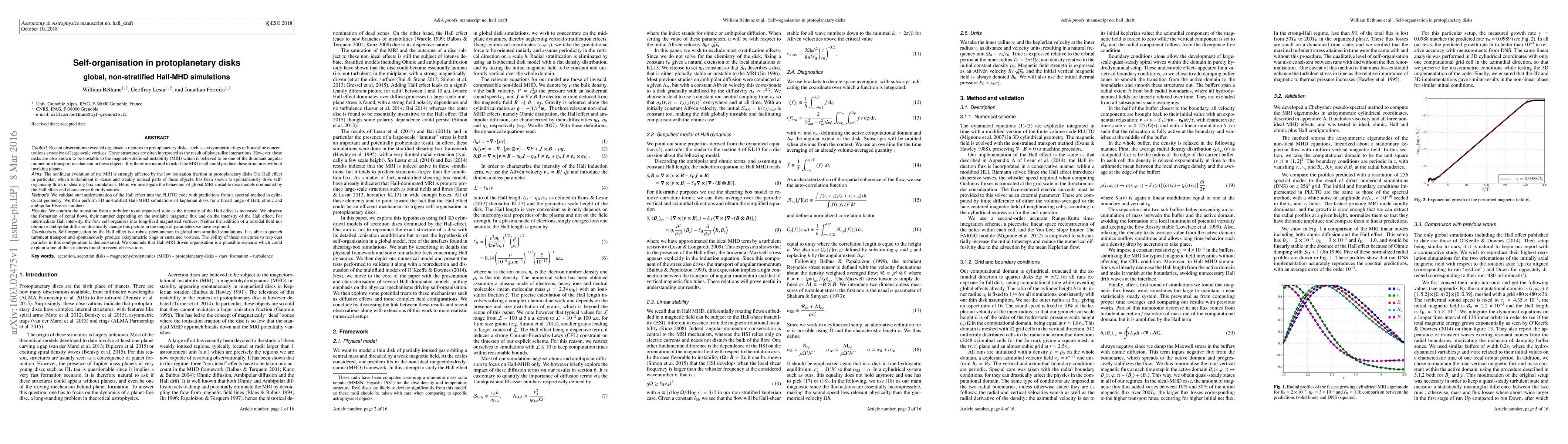 This paper investigates the self-organisation of protoplanetary disks through Hall-MHD simulations, finding that the Hall effect can drive the formation of organised structures like zonal flows and magnetised vortices without requiring planet-disc interactions. These structures may explain observed organised features in protoplanetary disks.