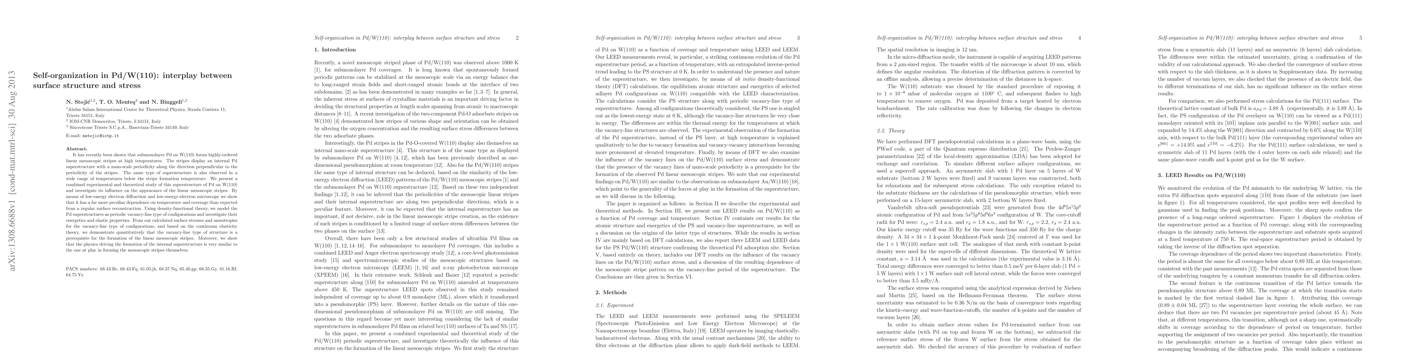 Researchers study how surface structure affects stress in Pd on W(110) surfaces, finding that a peculiar superstructure is necessary for stripe formation, with similar physics driving both the internal superstructure and stripes.