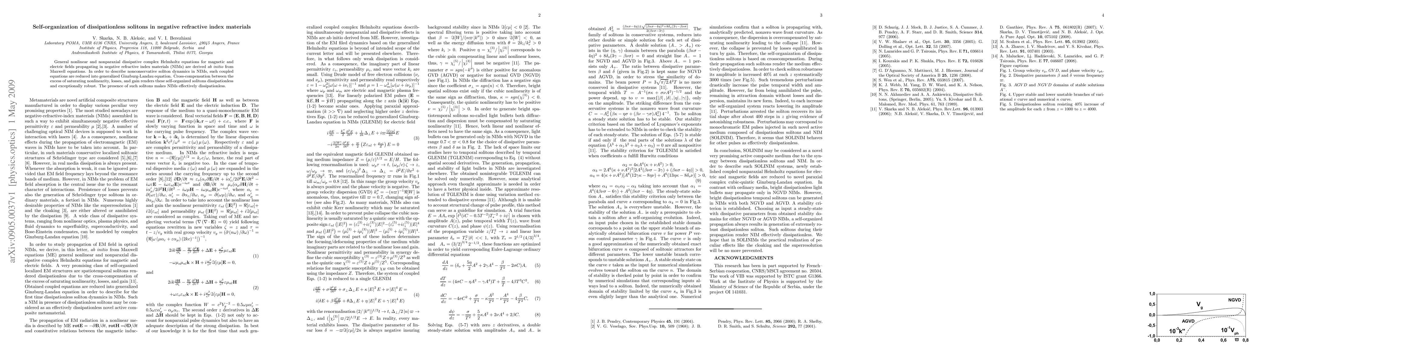 Researchers discovered self-organized dissipationless solitons in negative refractive index materials, which makes NIMs effectively dissipationless due to cross-compensation between nonlinearity, losses, and gain.