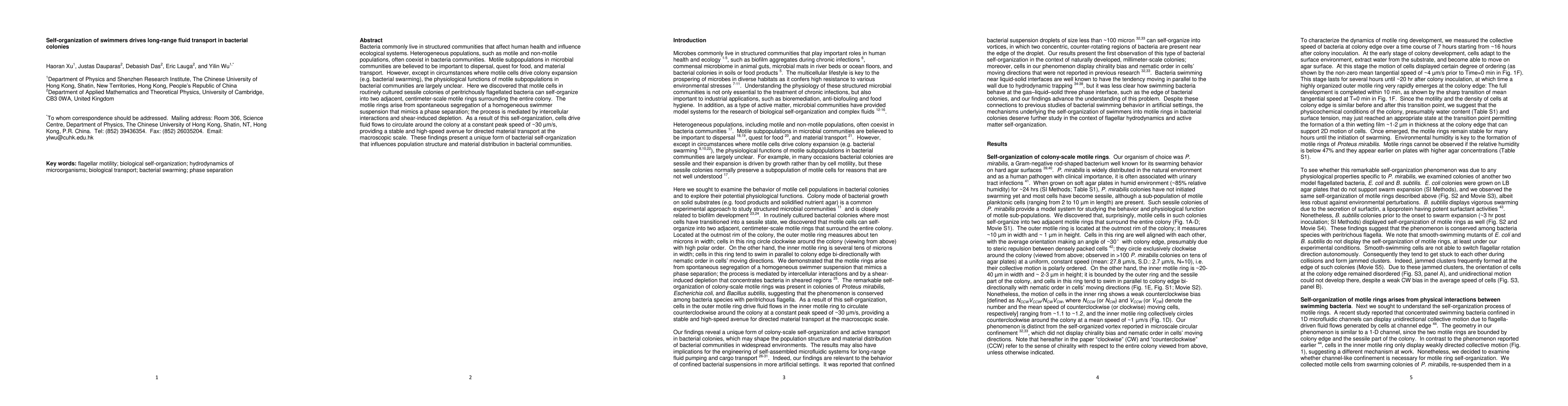This study reveals that motile bacteria in sessile colonies self-organize into large-scale motile rings, driving fluid transport around the colony at a constant speed, which enhances material distribution and influences community structure. This self-organization mechanism, driven by intercellular interactions and shear forces, provides a new understanding of bacterial community dynamics.