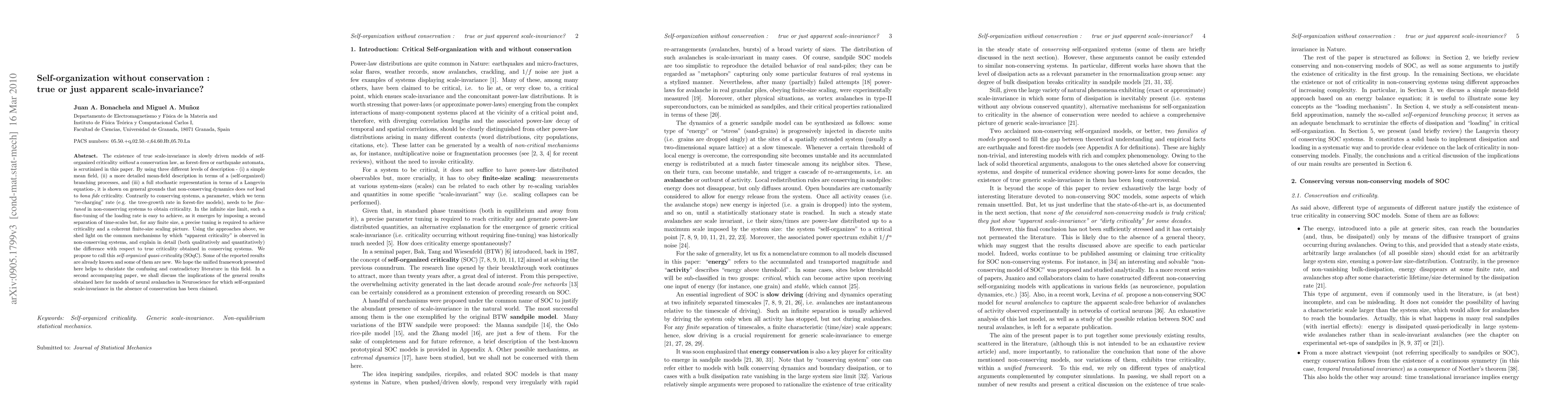 The existence of true scale-invariance in slowly driven models of self-organized criticality without a conservation law, as forest-fires or earthquake automata, is scrutinized in this paper. By using three different levels of description - (i) a simple mean field, (ii) a more detailed mean-field description in terms of a (self-organized) branching processes, and (iii) a full stochastic representation in terms of a Langevin equation-, it is shown on general grounds that non-conserving dynamics does not lead to bona fide criticality. Contrarily to conserving systems, a parameter, which we term "re-charging" rate (e.g. the tree-growth rate in forest-fire models), needs to be fine-tuned in non-conserving systems to obtain criticality. In the infinite size limit, such a fine-tuning of the loading rate is easy to achieve, as it emerges by imposing a second separation of time-scales but, for any finite size, a precise tuning is required to achieve criticality and a coherent finite-size scaling picture. Using the approaches above, we shed light on the common mechanisms by which "apparent criticality" is observed in non-conserving systems, and explain in detail (both qualitatively and quantitatively) the difference with respect to true criticality obtained in conserving systems. We propose to call this self-organized quasi-criticality (SOqC). Some of the reported results are already known and some of them are new. We hope the unified framework presented here helps to elucidate the confusing and contradictory literature in this field. In a second accompanying paper, we shall discuss the implications of the general results obtained here for models of neural avalanches in Neuroscience for which self-organized scale-invariance in the absence of conservation has been claimed.