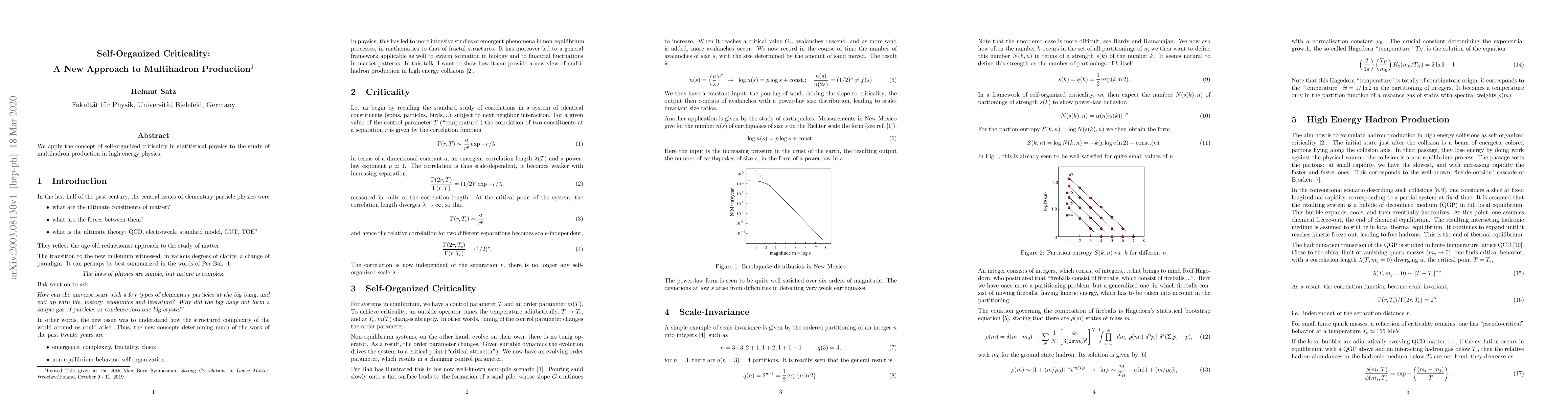 Summary: This study applies self-organized criticality from statistical physics to analyze multihadron production in high energy collisions, suggesting a natural evolution towards critical states in these complex interactions.