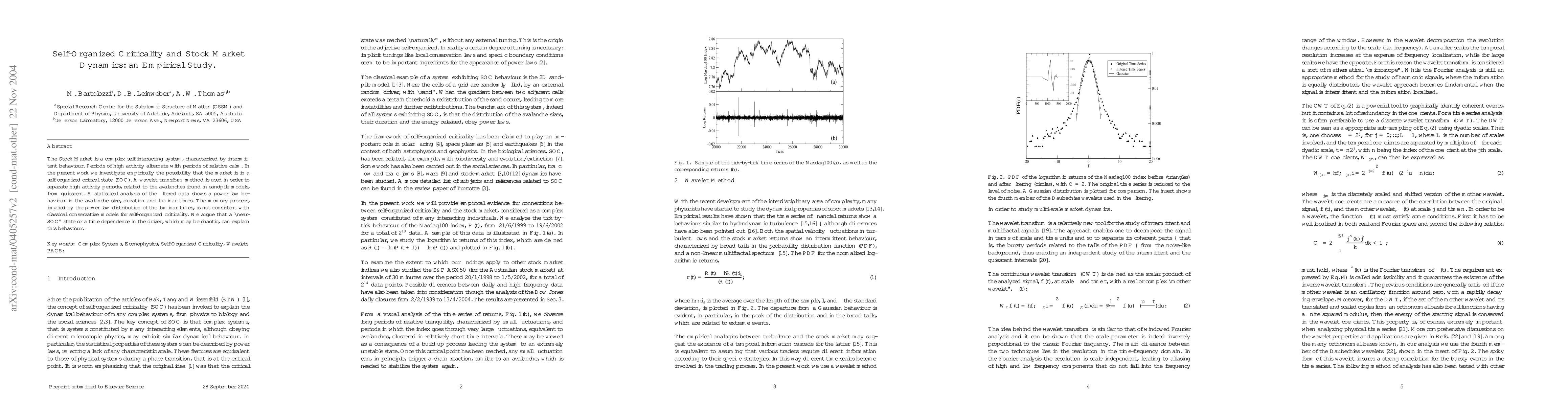 The Stock Market is a complex self-interacting system, characterized by an intermittent behaviour. Periods of high activity alternate with periods of relative calm. In the present work we investigate empirically about the possibility that the market is in a self-organized critical state (SOC). A wavelet transform method is used in order to separate high activity periods, related to the avalanches of sandpile models, from quiescent. A statistical analysis of the filtered data show a power law behaviour in the avalanche size, duration and laminar times. The memory process, implied by the power law distribution, of the laminar times is not consistent with classical conservative models for self-organized criticality. We argue that a ``near-SOC'' state or a time dependence in the driver, which may be chaotic, can explain this behaviour.
