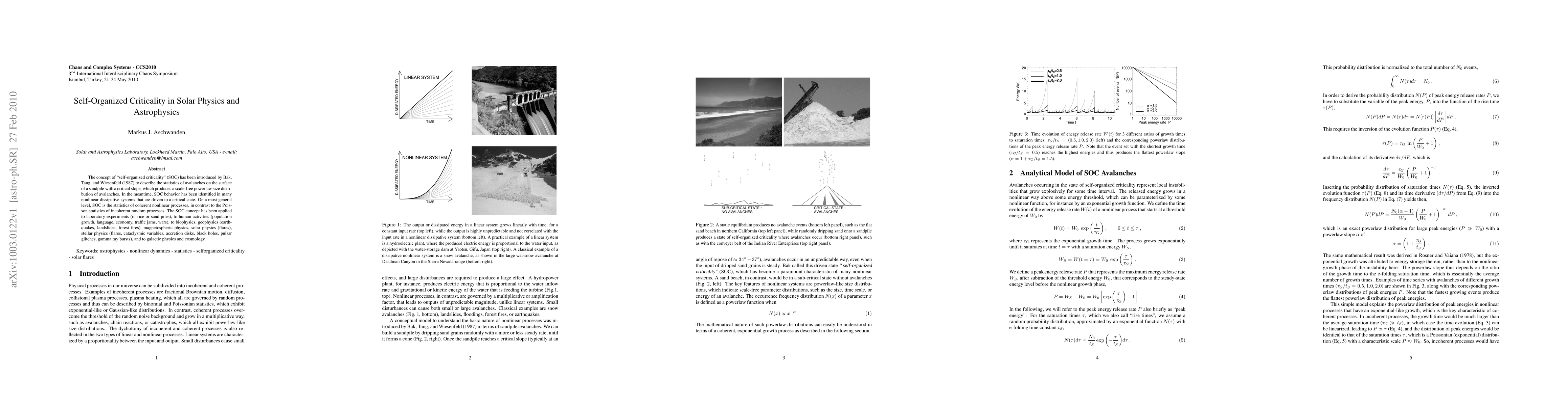This paper explores the application of self-organized criticality (SOC) in solar physics and astrophysics, highlighting its relevance in describing scale-free powerlaw distributions in phenomena like solar flares and stellar activity, extending its utility beyond simple sandpile models to complex astrophysical processes.
