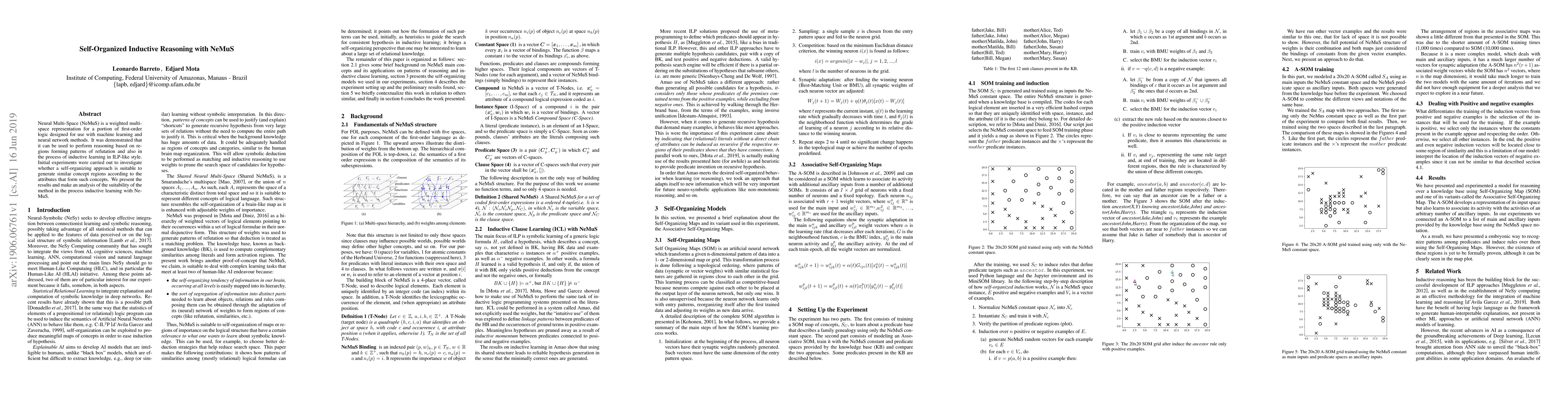 Neural Multi-Space (NeMuS) is a weighted multi-space representation for a portion of first-order logic designed for use with machine learning and neural network methods. It was demonstrated that it can be used to perform reasoning based on regions forming patterns of refutation and also in the process of inductive learning in ILP-like style. Initial experiments were carried out to investigate whether a self-organizing the approach is suitable to generate similar concept regions according to the attributes that form such concepts. We present the results and make an analysis of the suitability of the method in the process of inductive learning with NeMuS.
