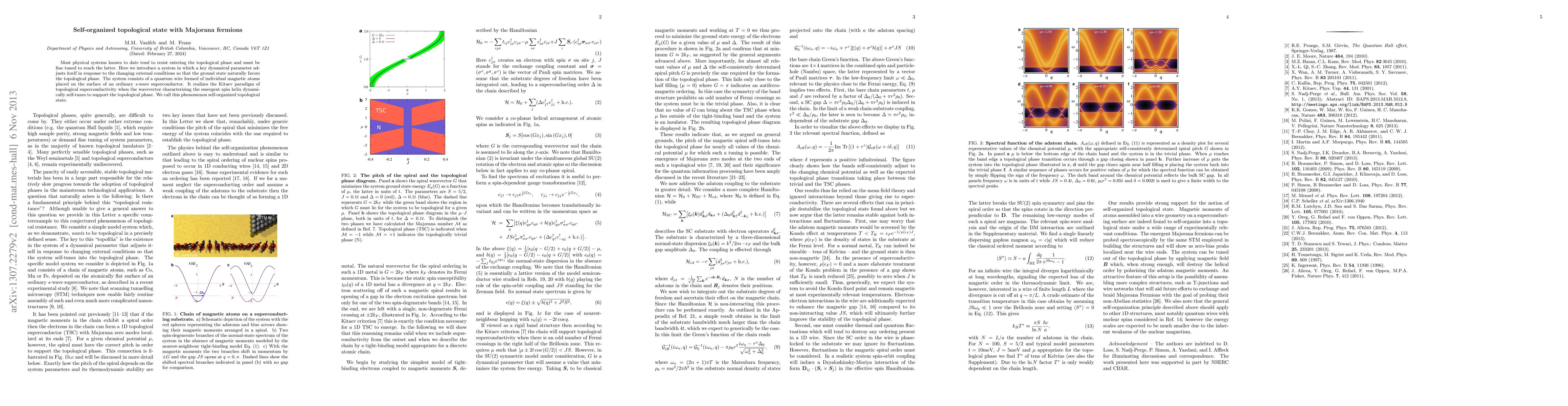 Topological phases, quite generally, are difficult to come by. They either occur under rather extreme conditions (e.g. the quantum Hall liquids, which require high sample purity, strong magnetic fields and low temperatures) or demand fine tuning of system parameters, as in the majority of known topological insulators. Many perfectly sensible topological phases, such as the Weyl semimetals and topological superconductors, remain experimentally undiscovered. Here we introduce a system in which a key dynamical parameter adjusts itself in response to the changing external conditions so that the ground state naturally favours the topological phase. The system consists of a quantum wire formed of individual magnetic atoms placed on the surface of an ordinary s-wave superconductor. It realizes the Kitaev paradigm of topological superconductivity when the wavevector characterizing the emergent spin helix dynamically self-tunes to support the topological phase.