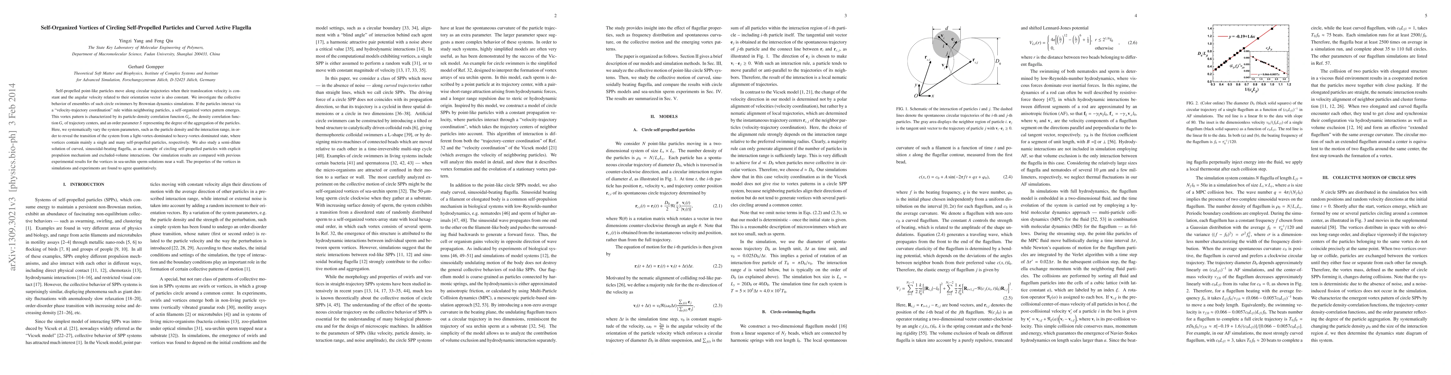 The paper explores the collective behavior and self-organization of ensembles of circling self-propelled particles, revealing vortex formation via "velocity-trajectory coordination" interactions. Simulations show a transition from light to heavy vortices based on system parameters, and results match experimental observations of sea-urchin sperm vortices.