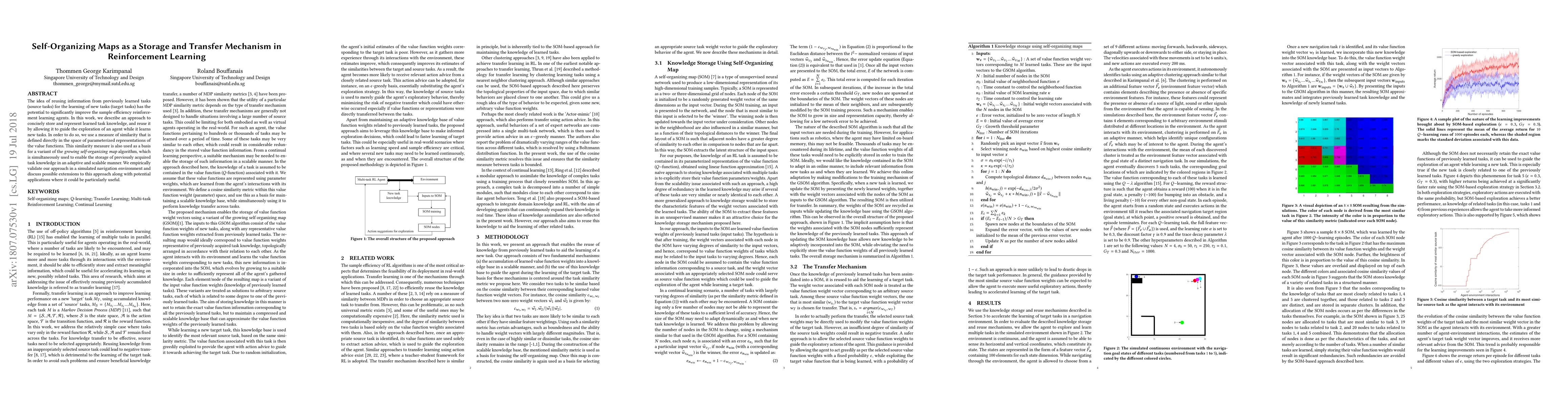 The idea of reusing information from previously learned tasks (source tasks) for the learning of new tasks (target tasks) has the potential to significantly improve the sample efficiency reinforcement learning agents. In this work, we describe an approach to concisely store and represent learned task knowledge, and reuse it by allowing it to guide the exploration of an agent while it learns new tasks. In order to do so, we use a measure of similarity that is defined directly in the space of parameterized representations of the value functions. This similarity measure is also used as a basis for a variant of the growing self-organizing map algorithm, which is simultaneously used to enable the storage of previously acquired task knowledge in an adaptive and scalable manner.We empirically validate our approach in a simulated navigation environment and discuss possible extensions to this approach along with potential applications where it could be particularly useful.
