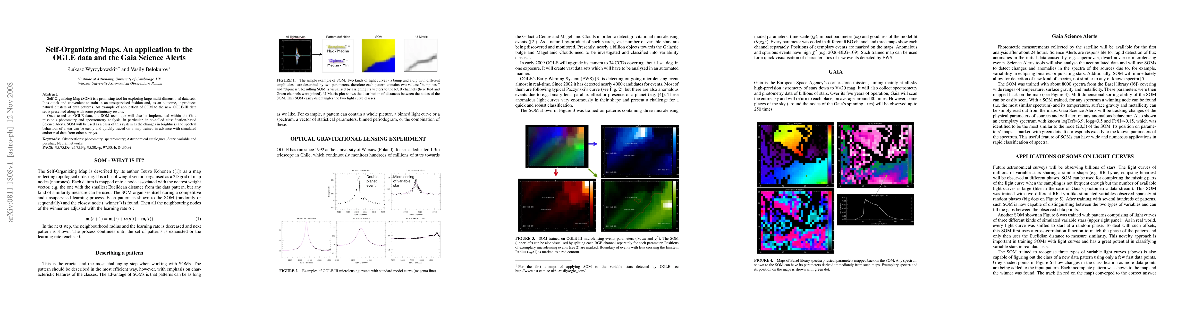 Self-Organizing Map (SOM) is a promising tool for exploring large multi-dimensional data sets. It is quick and convenient to train in an unsupervised fashion and, as an outcome, it produces natural clusters of data patterns. An example of application of SOM to the new OGLE-III data set is presented along with some preliminary results. Once tested on OGLE data, the SOM technique will also be implemented within the Gaia mission's photometry and spectrometry analysis, in particular, in so-called classification-based Science Alerts. SOM will be used as a basis of this system as the changes in brightness and spectral behaviour of a star can be easily and quickly traced on a map trained in advance with simulated and/or real data from other surveys.