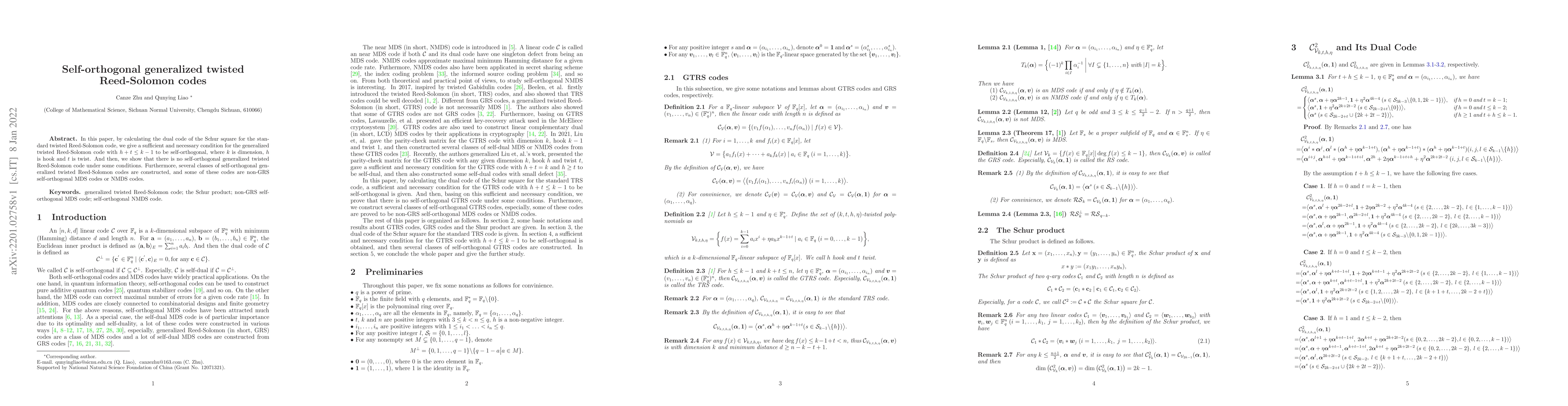 This paper establishes a necessary and sufficient condition for self-orthogonality in generalized twisted Reed-Solomon codes under certain parameters, and constructs several classes of such codes, some of which are non-GRS self-orthogonal maximum distance separable (MDS) or non-MDS codes. It also demonstrates the non-existence of self-orthogonal codes under specific conditions.
