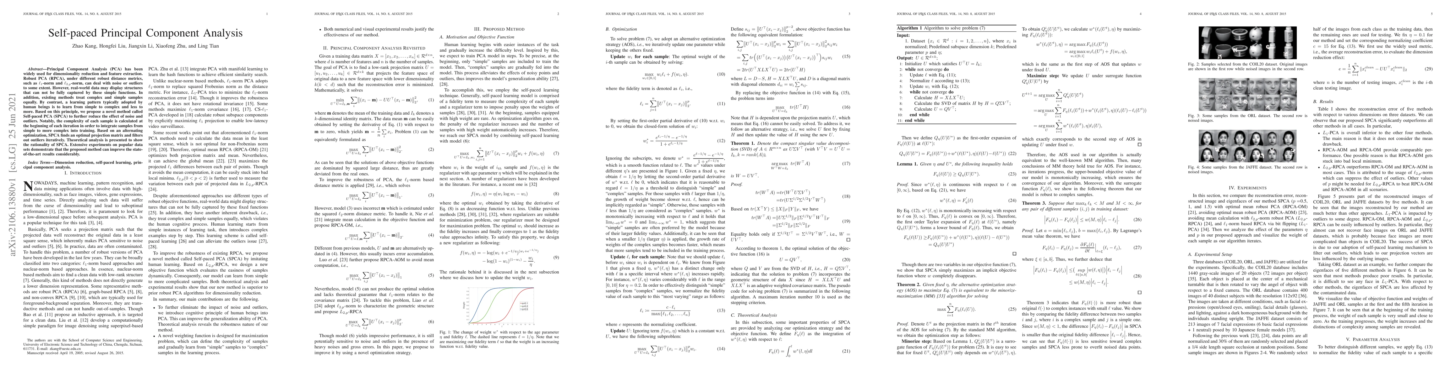 The paper proposes Self-paced PCA (SPCA), a novel method to reduce noise and outliers by learning from simple to complex samples, iteratively calculating sample complexity, and employing an alternating optimization to find an optimal projection matrix. Experimental results show SPCA significantly outperforms existing methods on popular datasets.